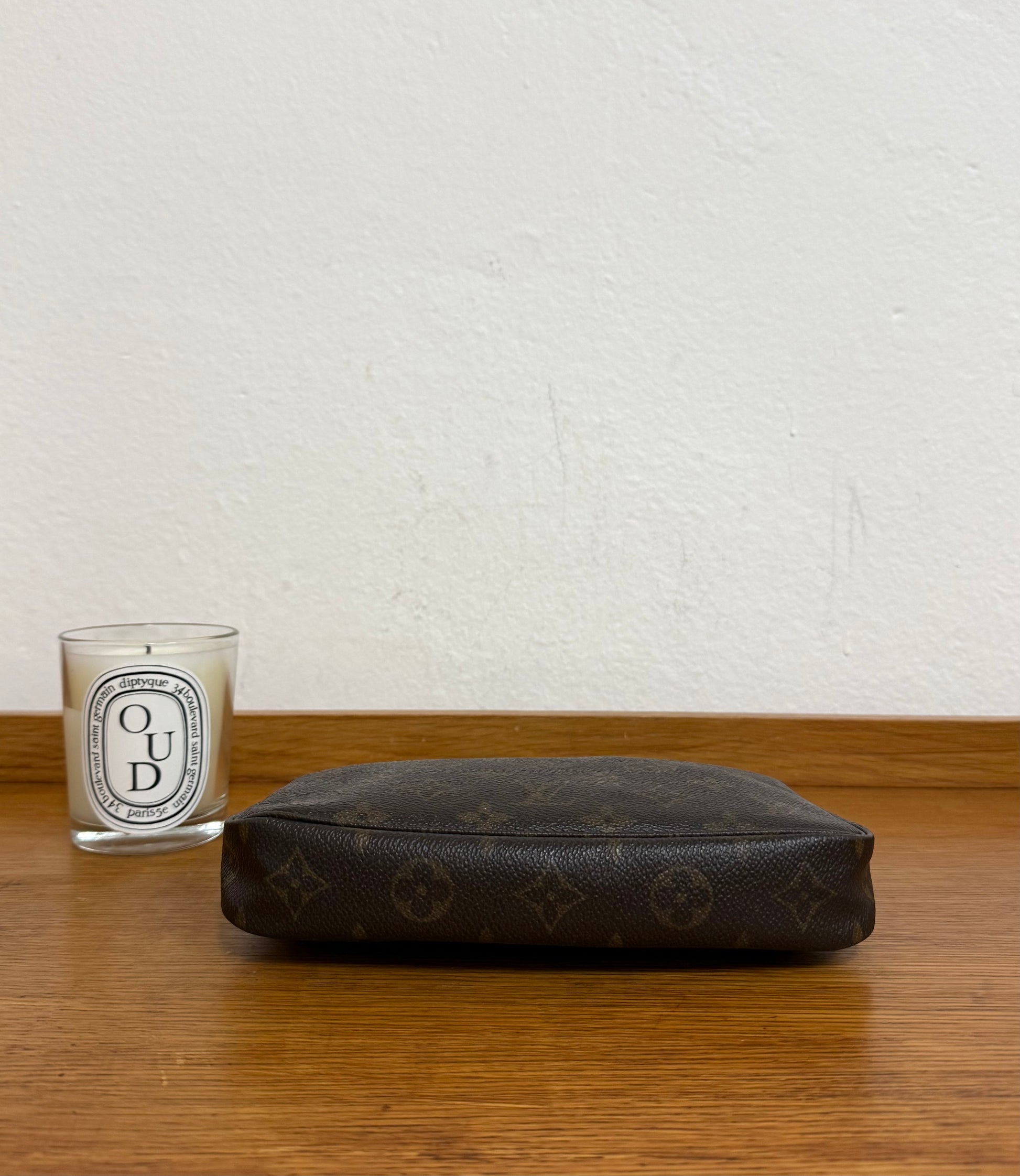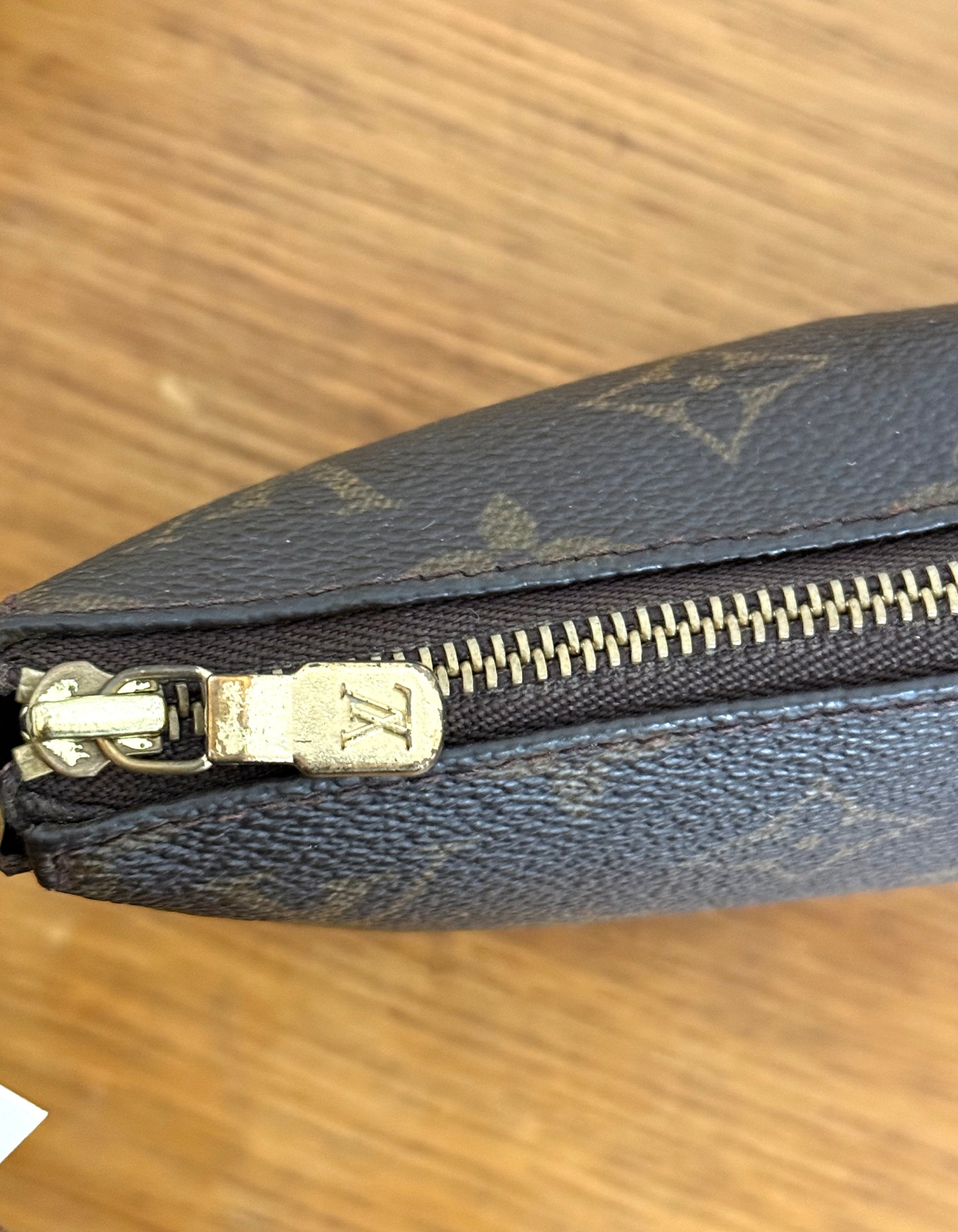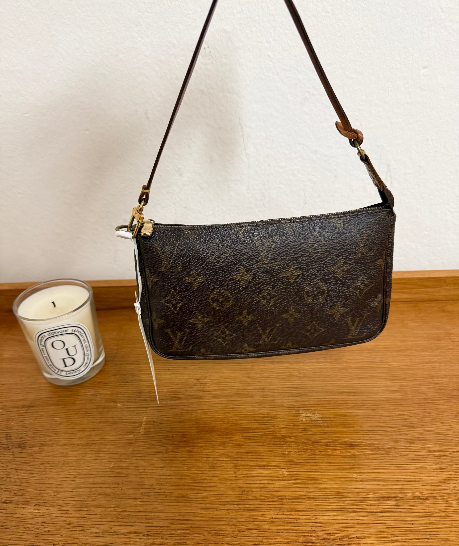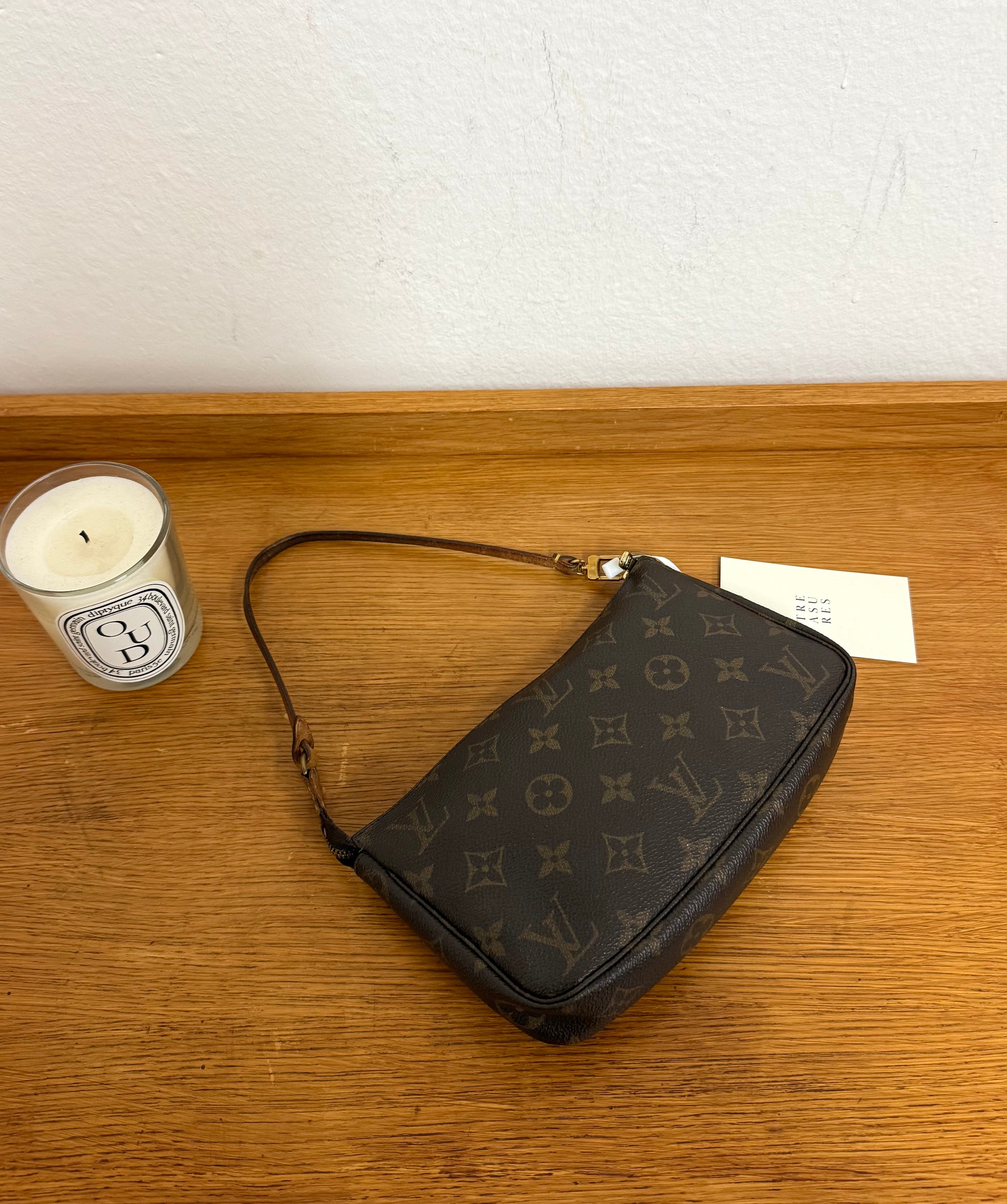 Krásná vintage Louis Vuitton pochette v klasickém monogram canvasu. Nadčasová minimalistická silueta, která se hodí jak na běžné dny. Praktická menší velikost, ideální na nezbytnosti jako telefon, klíče a rtěnku.