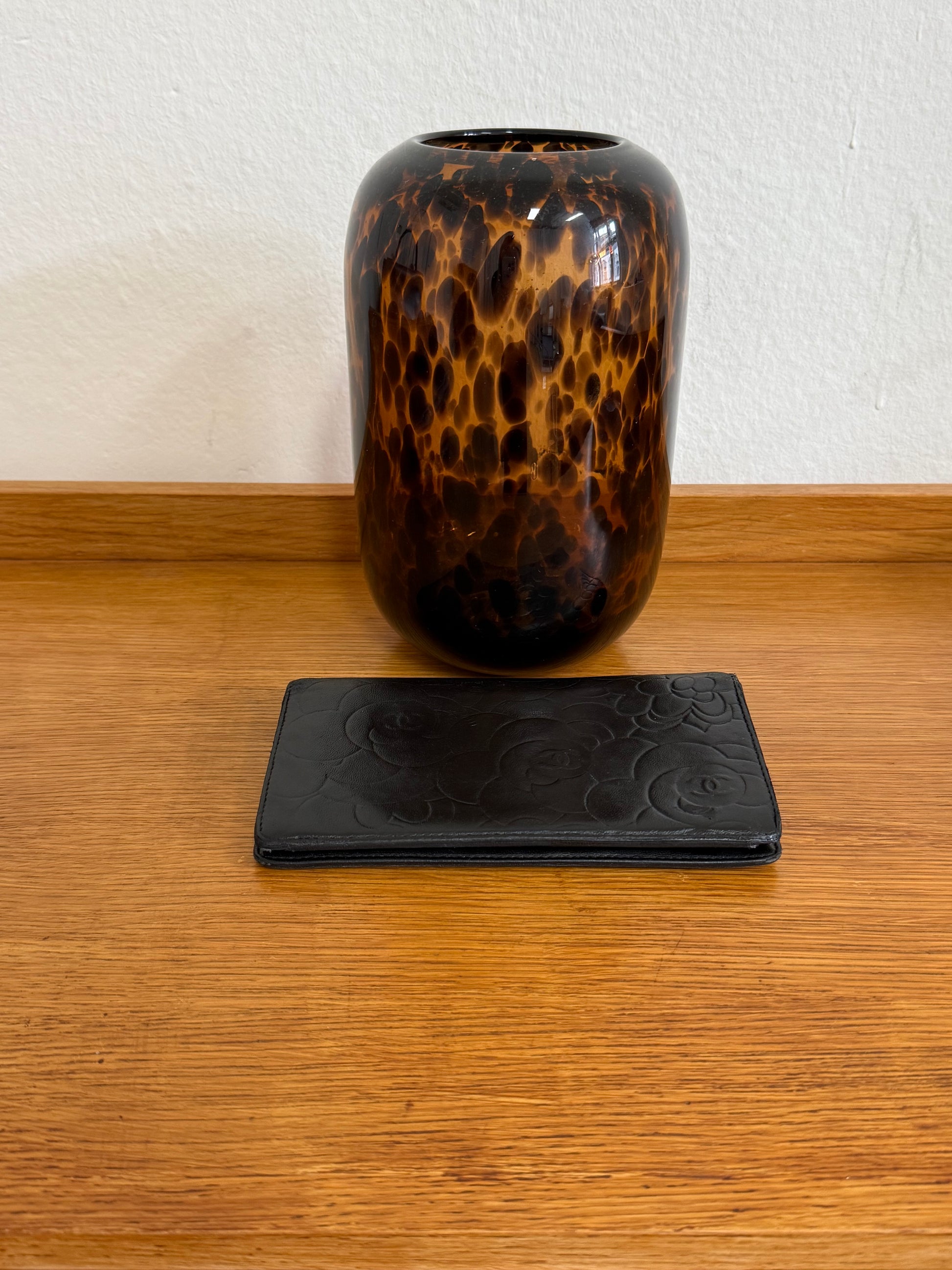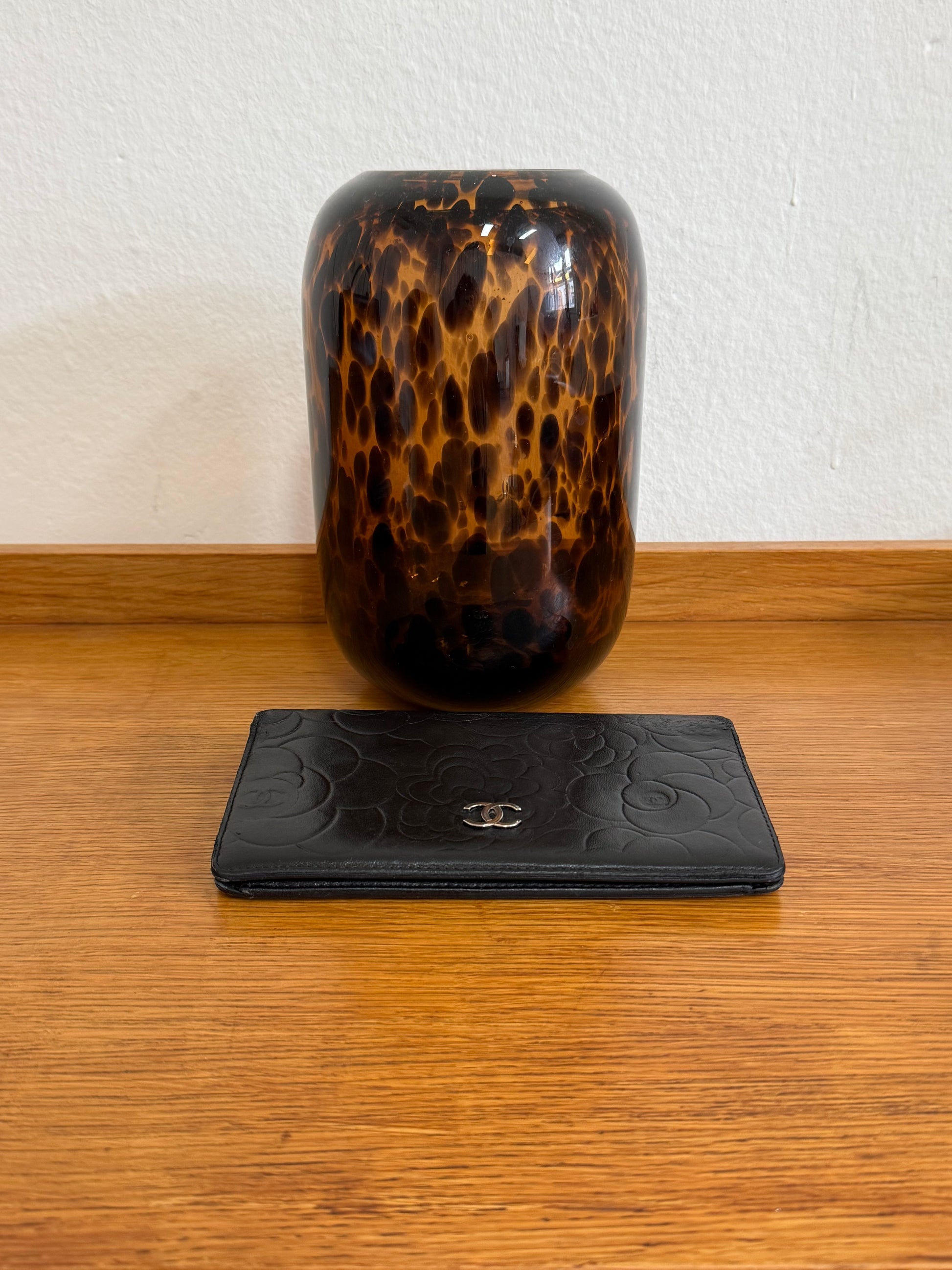 Chanel Camellia peněženka z černé kůže ze série 11 s ikonickým květinovým motivem. Nadčasový, elegantní kousek v klasické černé barvě, který vyniká jemným reliéfním vzorem camellia – symbolem značky Chanel. Lze nosit jako stylové psaníčko na řetízku nebo jako klasickou peněženku do kabelky.