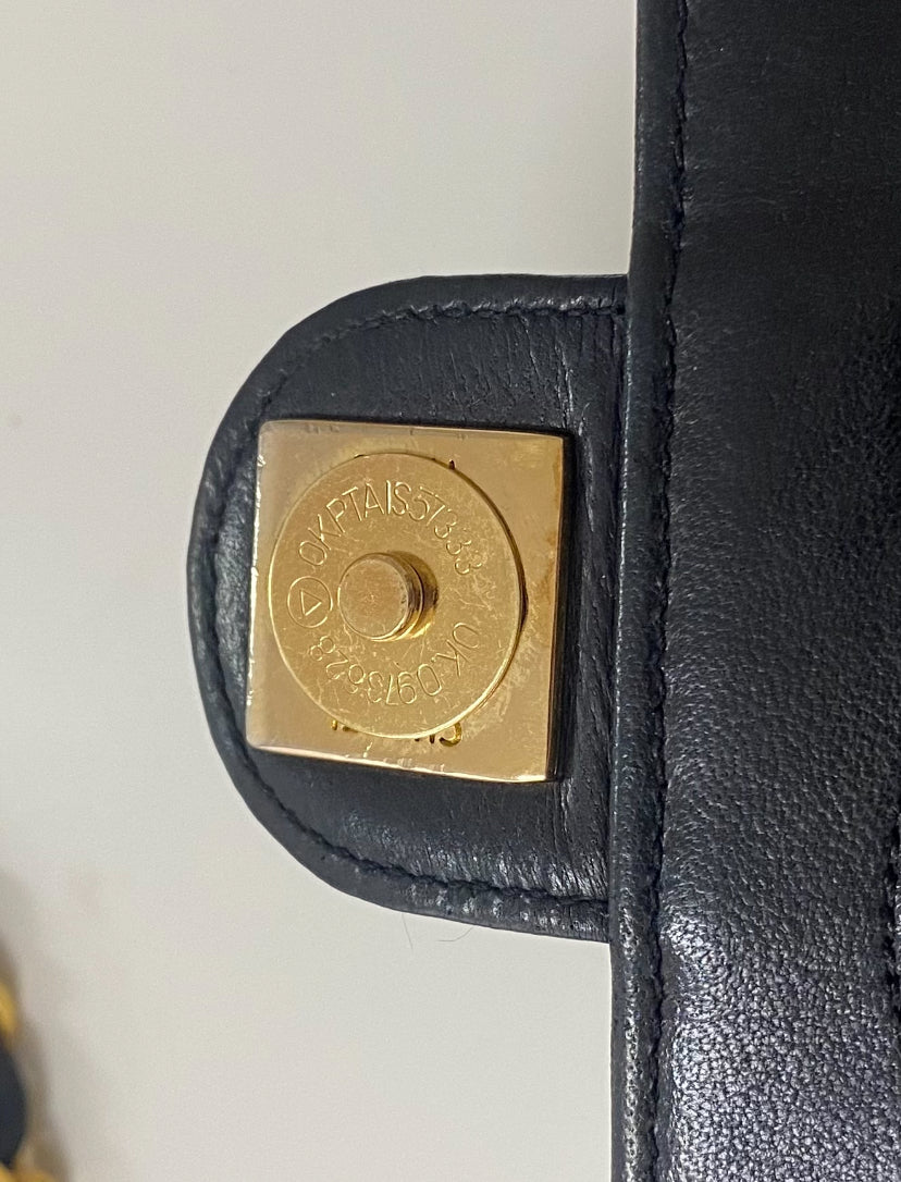 Condition: A beautiful vintage piece with age-appropriate signs of wear, such as creasing, scratches on the hardware.