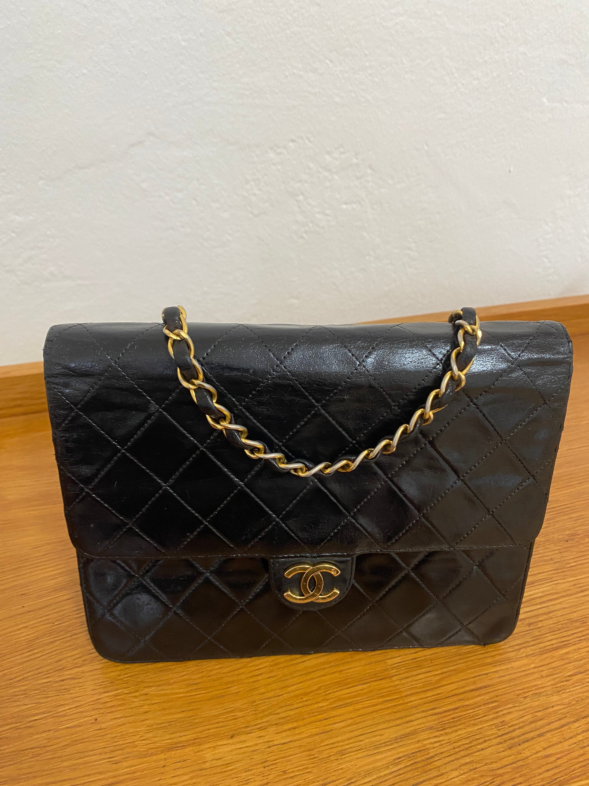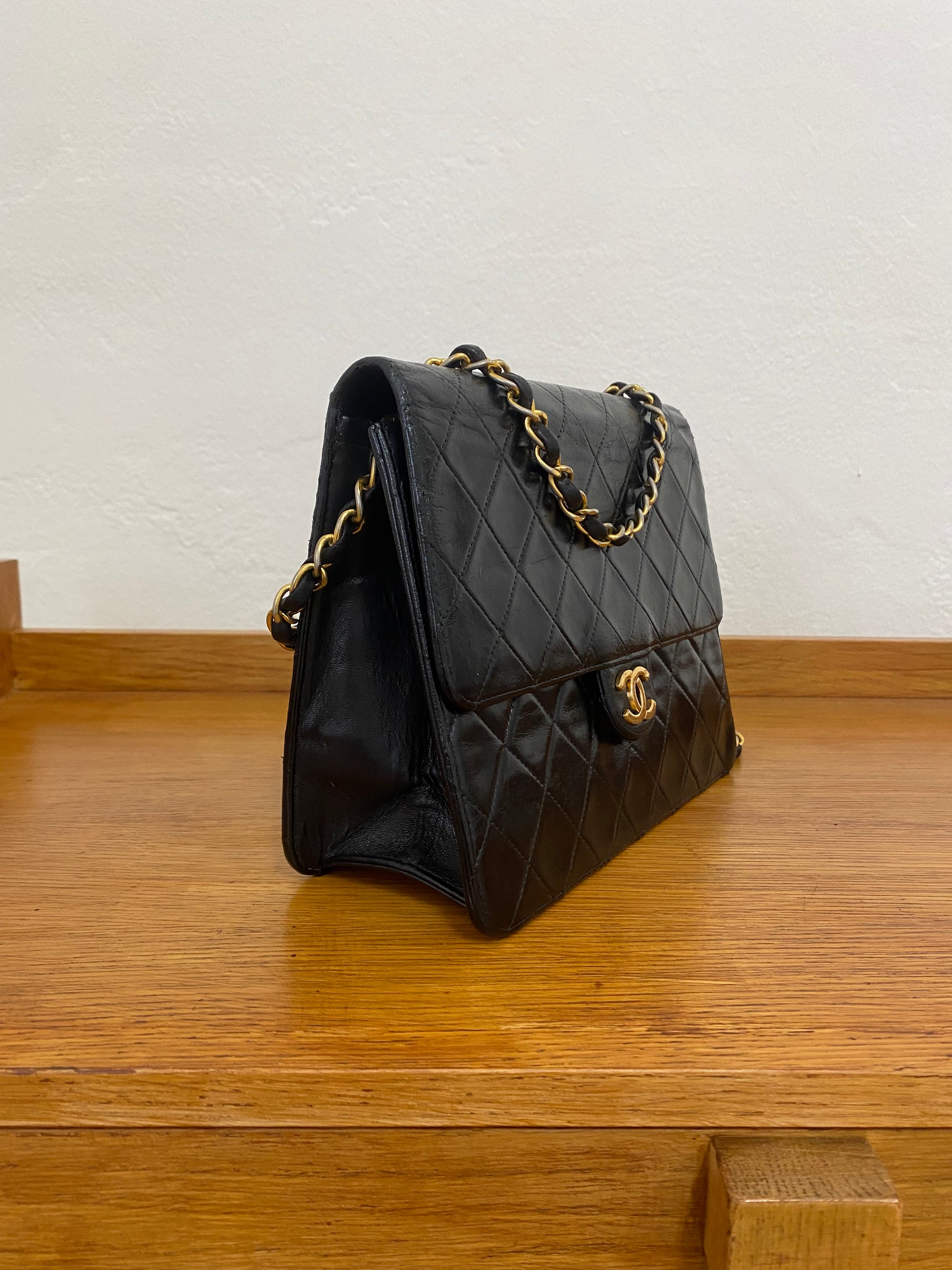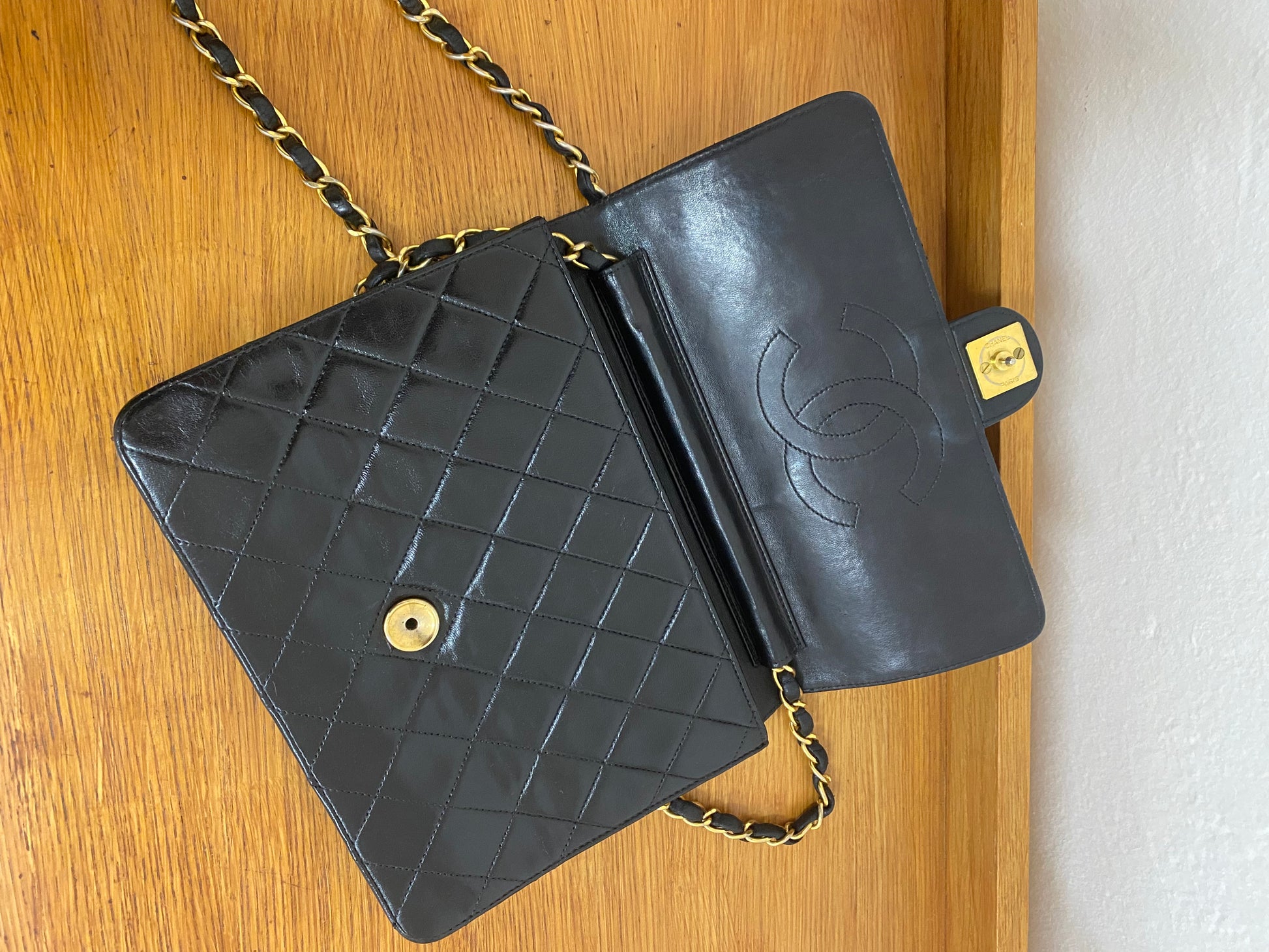 Classic vintage Chanel single flap with its original burgundy interior and original hardware.