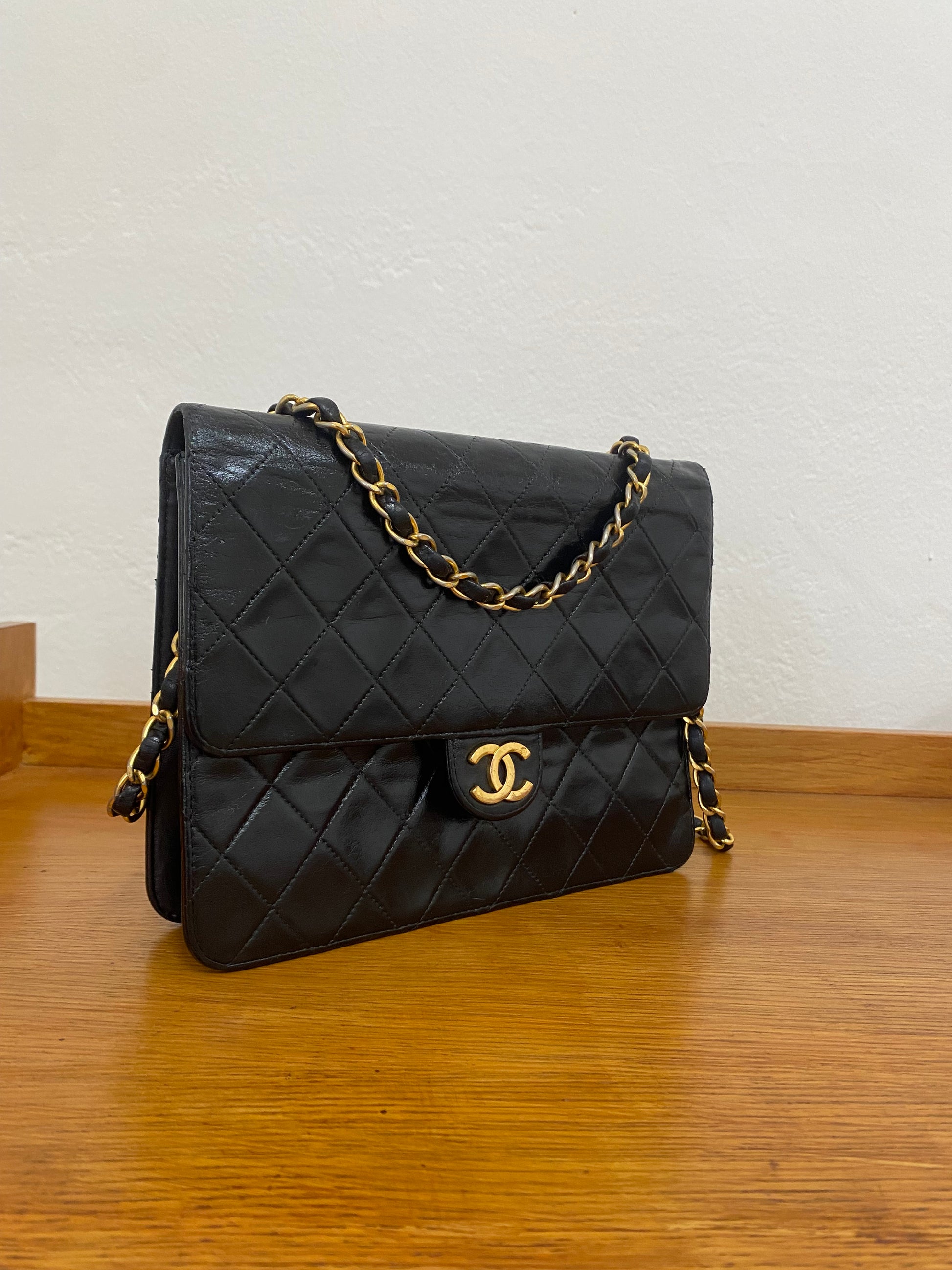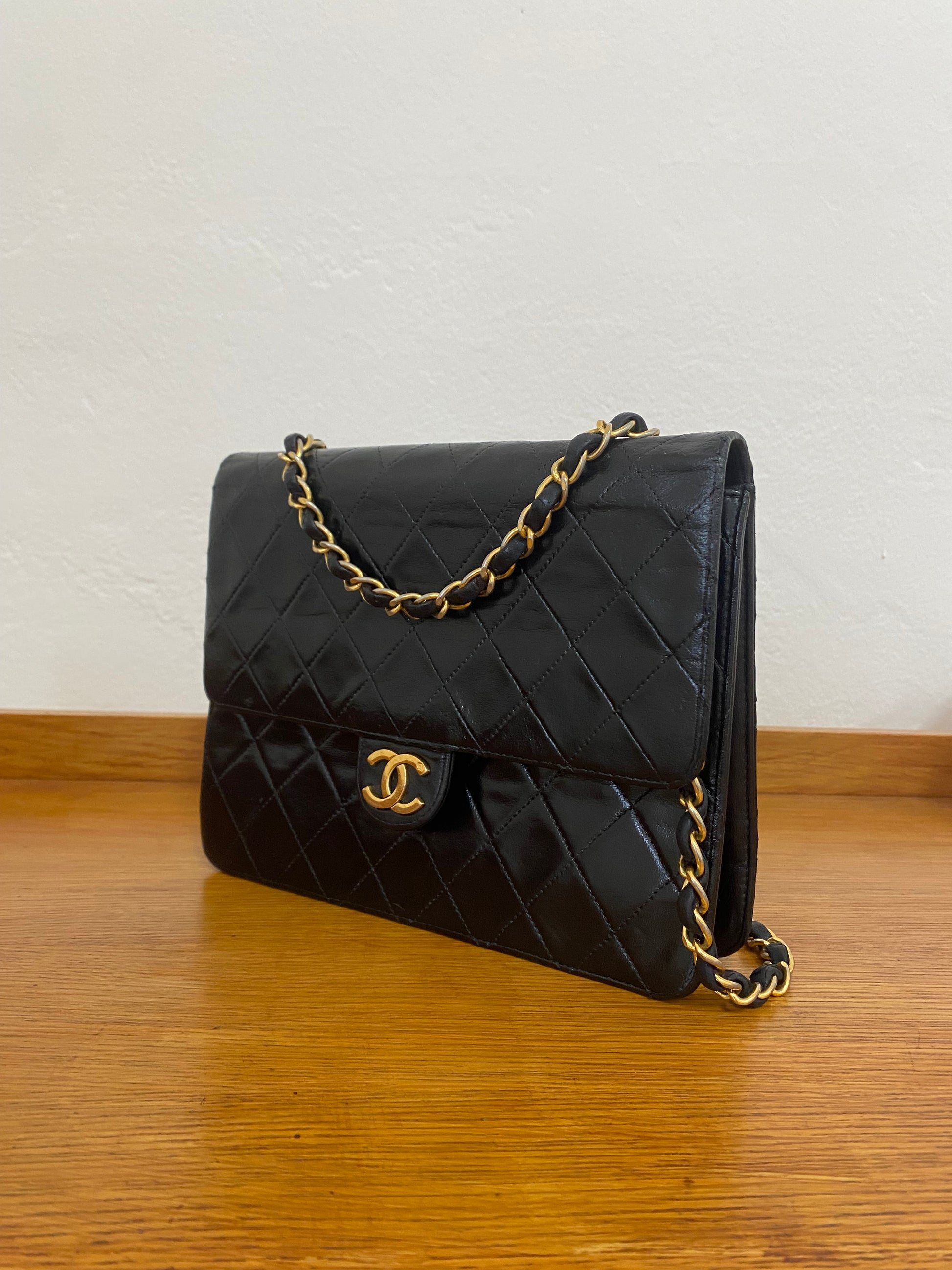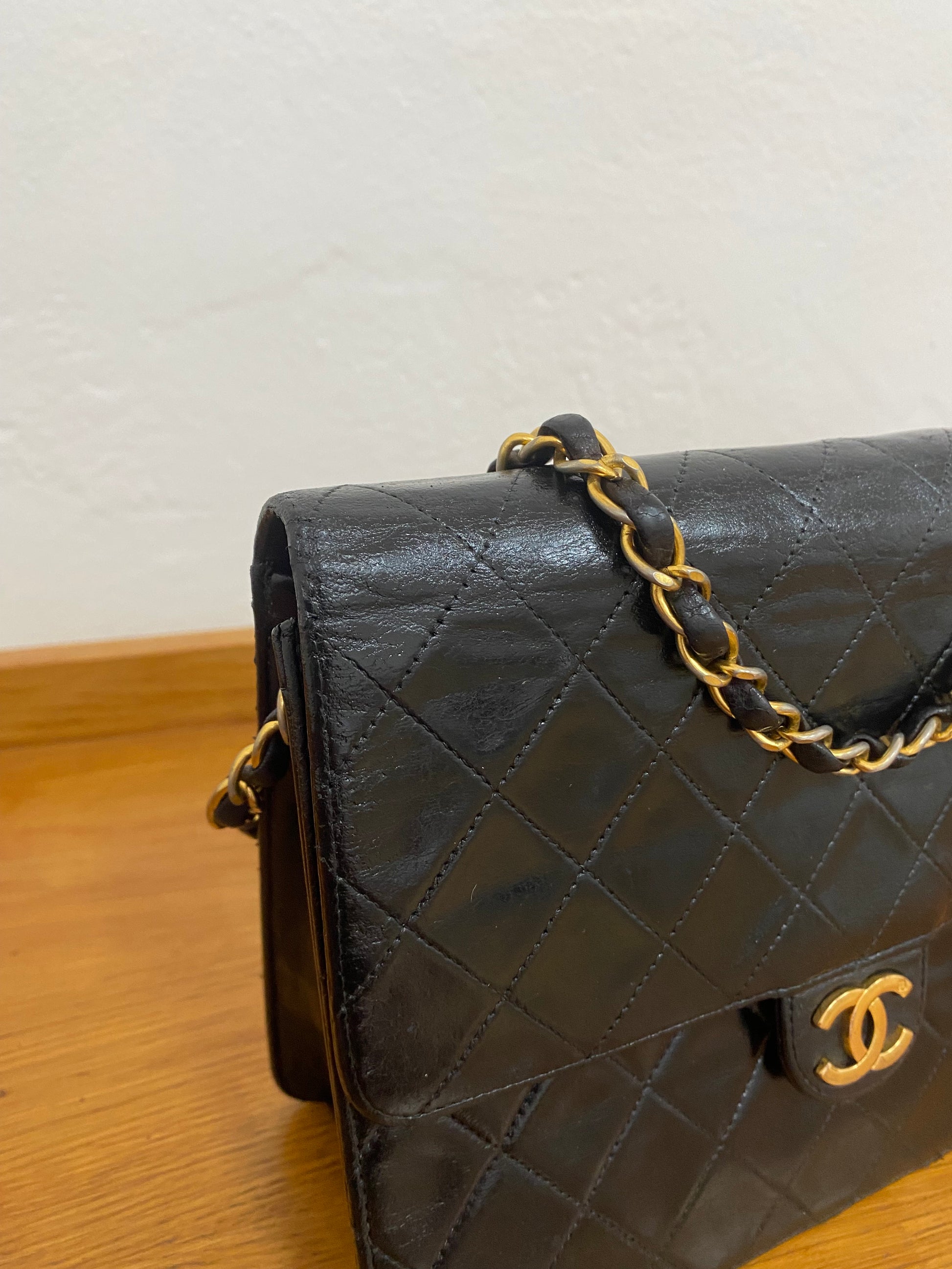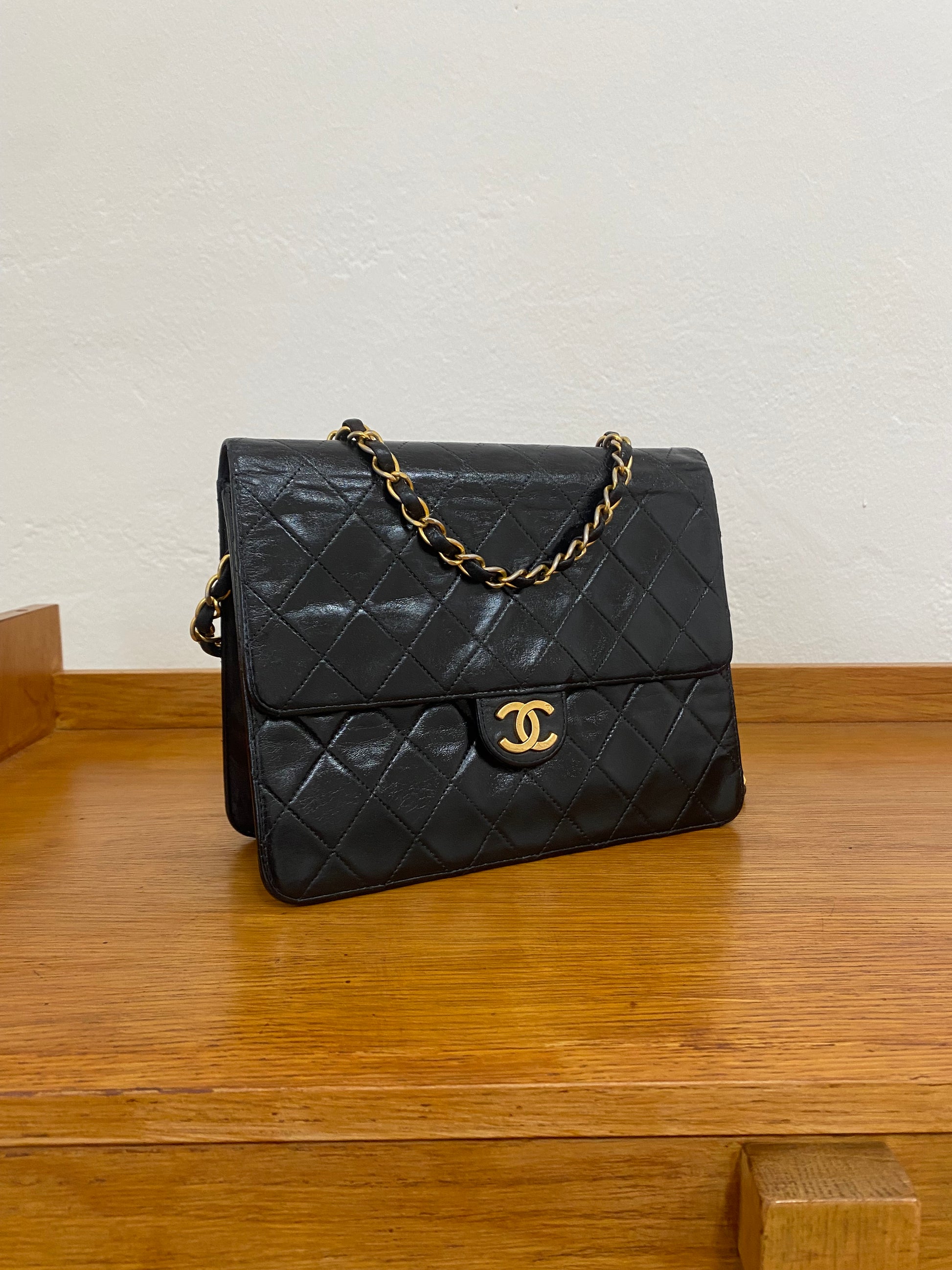Classic vintage Chanel single flap with its original burgundy interior and original hardware.