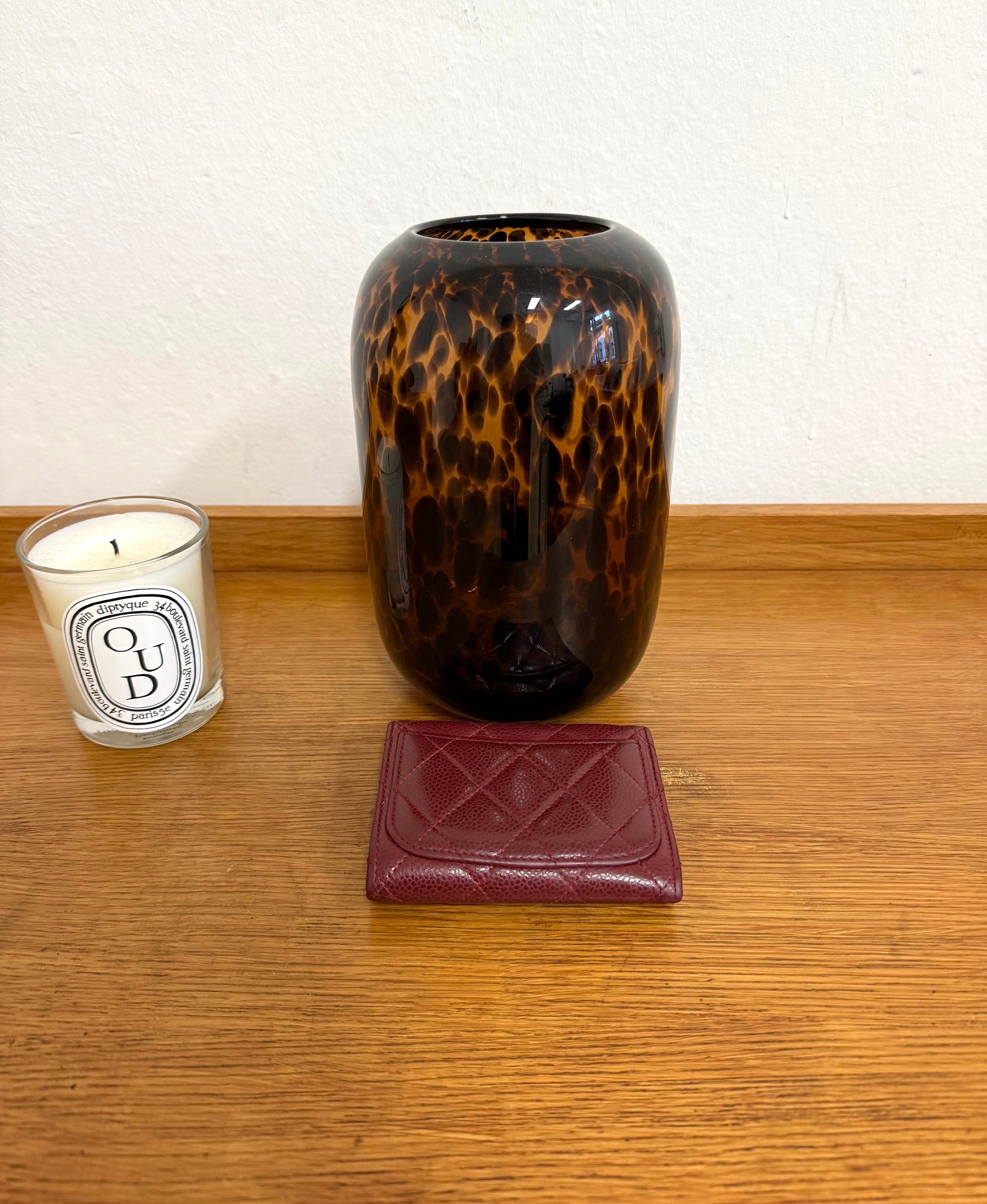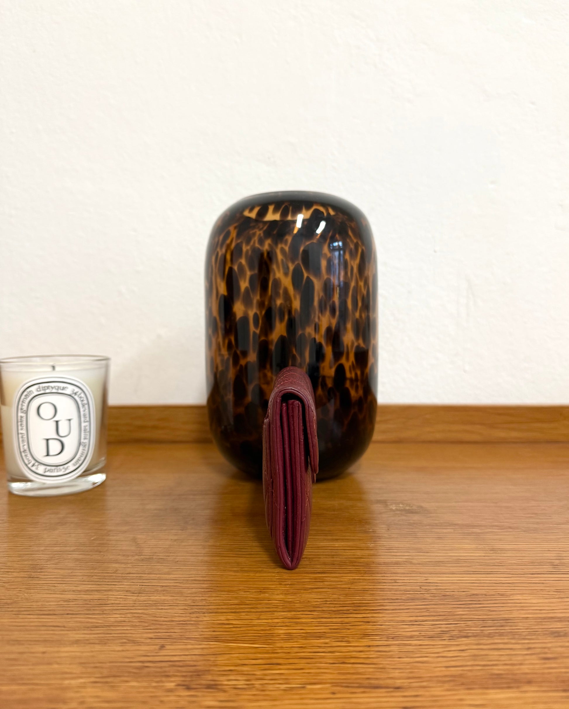 Elegantní Chanel mini peněženka z odolné caviar kůže v burgundy odstínu. Lze ji nosit na řetízku přes rameno nebo jako klasickou peněženku do kabelky.