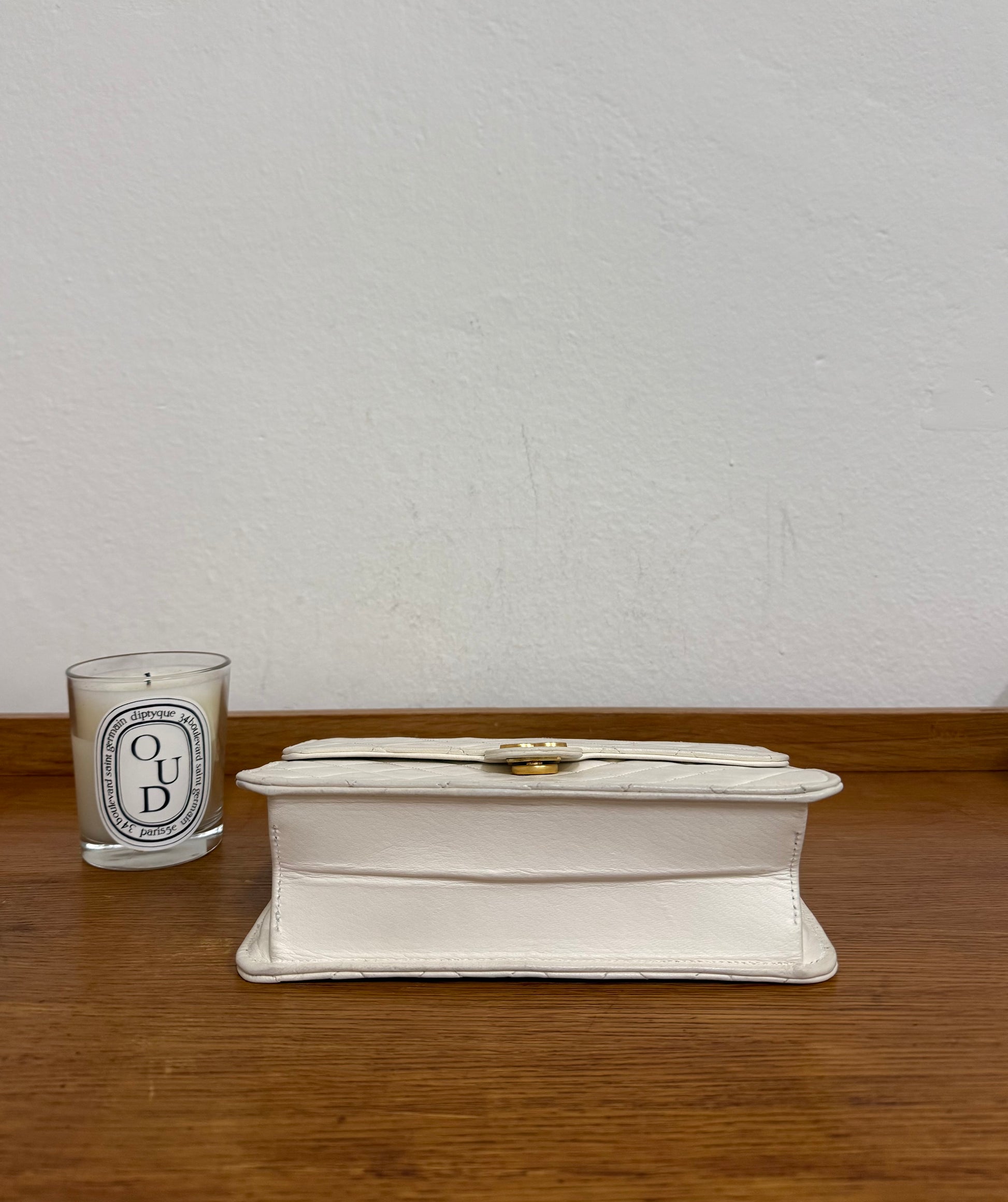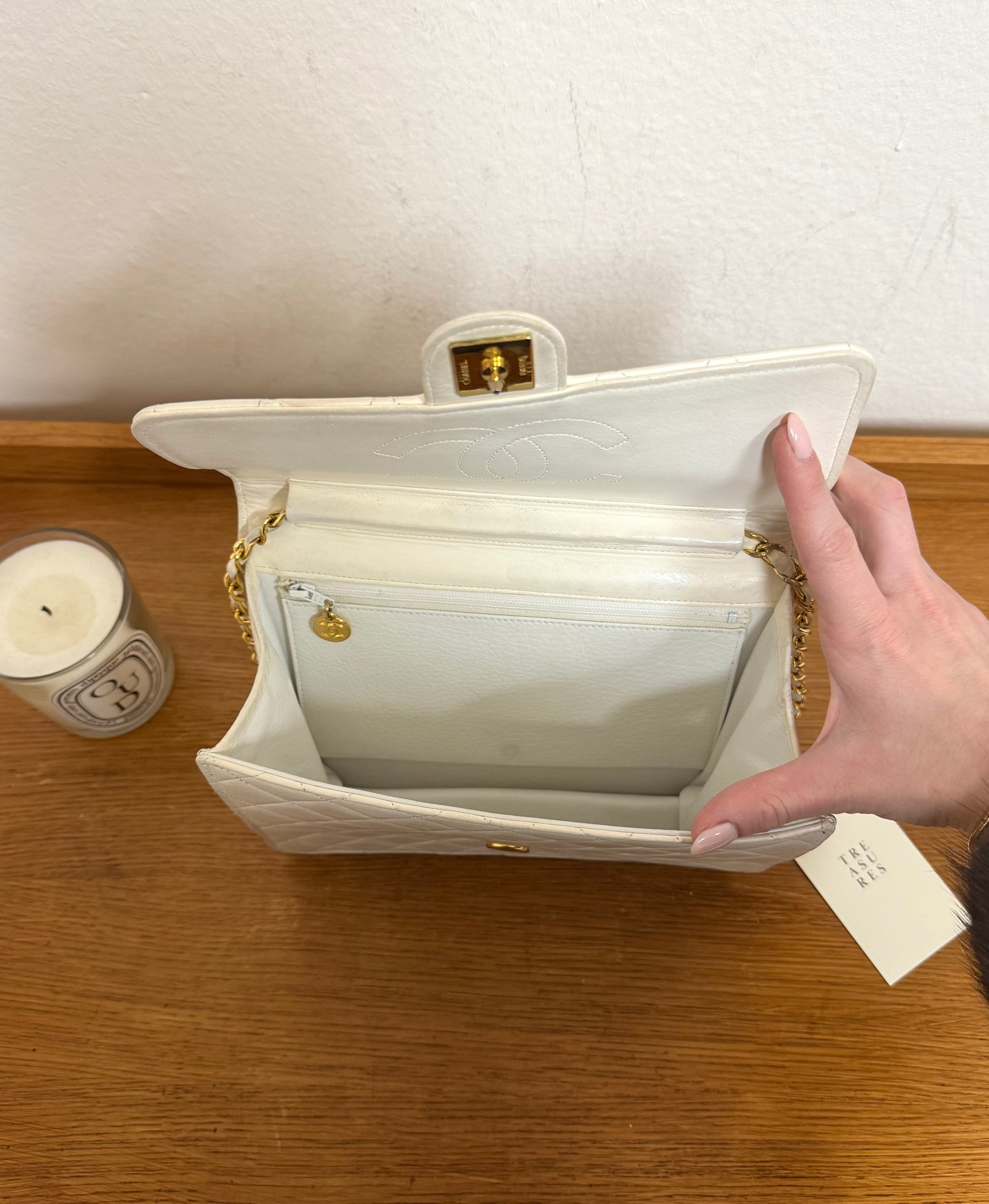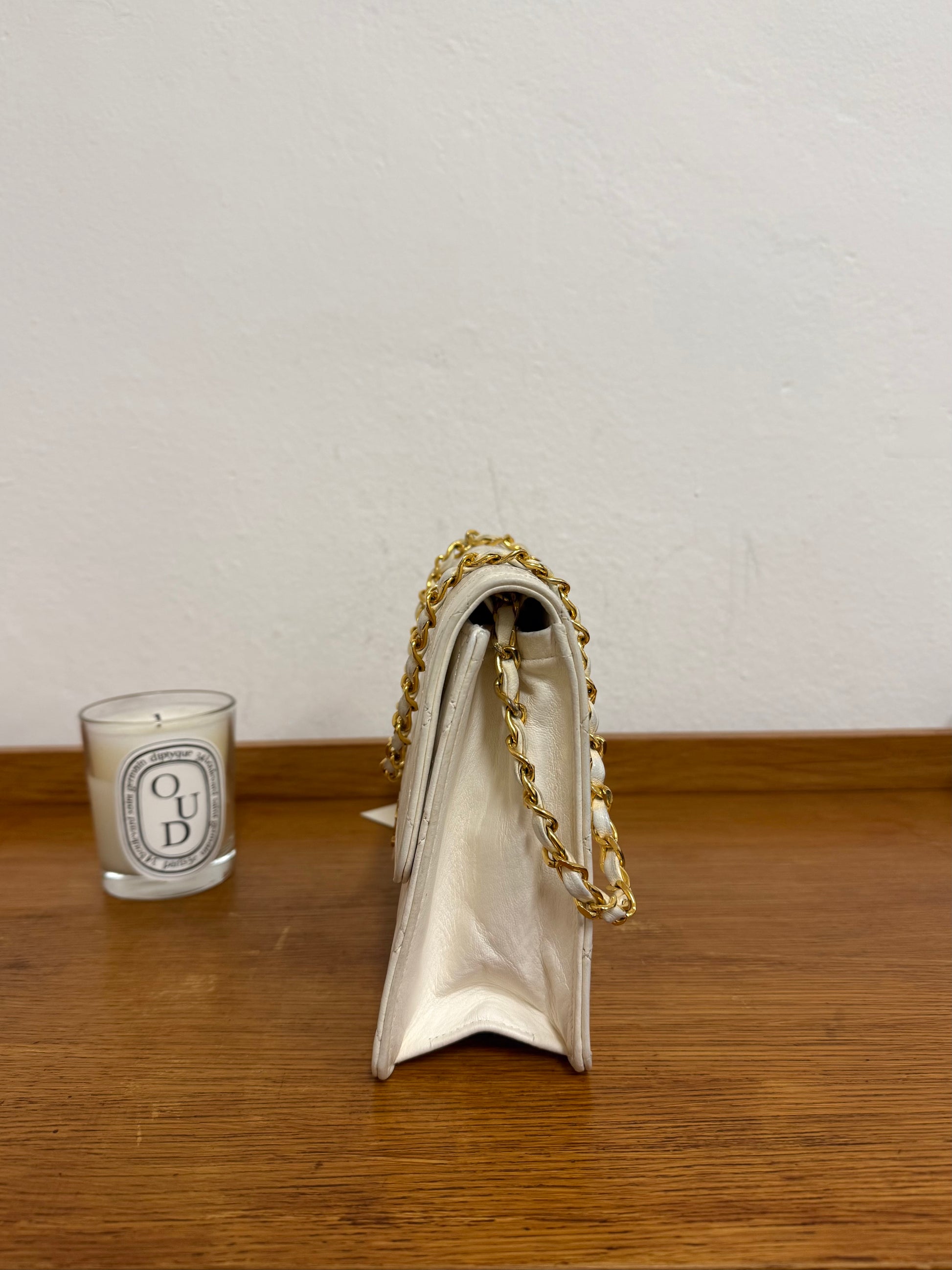 CHANEL CLASSIC SINGLE FLAP BAG LAMBSKIN WHITE 24K GOLD HW
