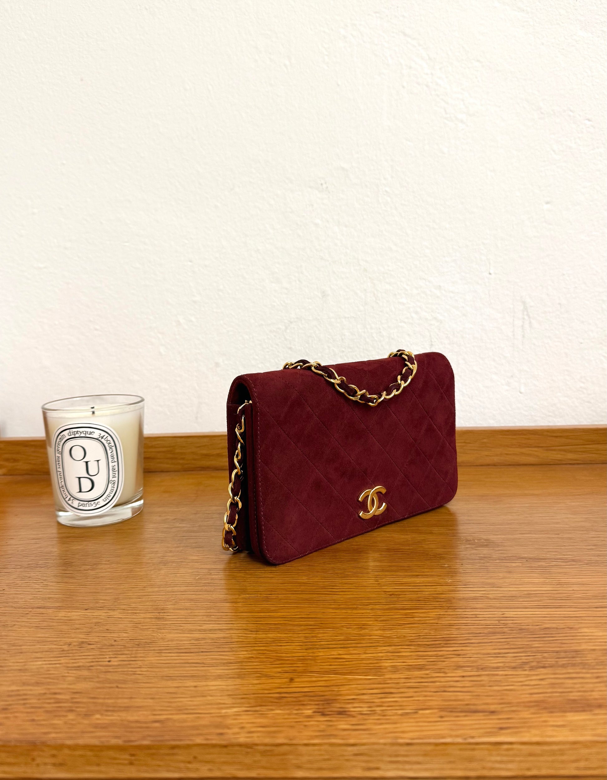 Elegantní Chanel Wallet on Chain z hebkého semiše v bordó odstínu se zlatým hardwarem. Sametový povrch působí bohatě a krásně ladí s podzimní paletou barev. Díky řetízku ji lze nosit přes rameno, nebo jej schovat dovnitř a proměnit ji v elegantní psaníčko.