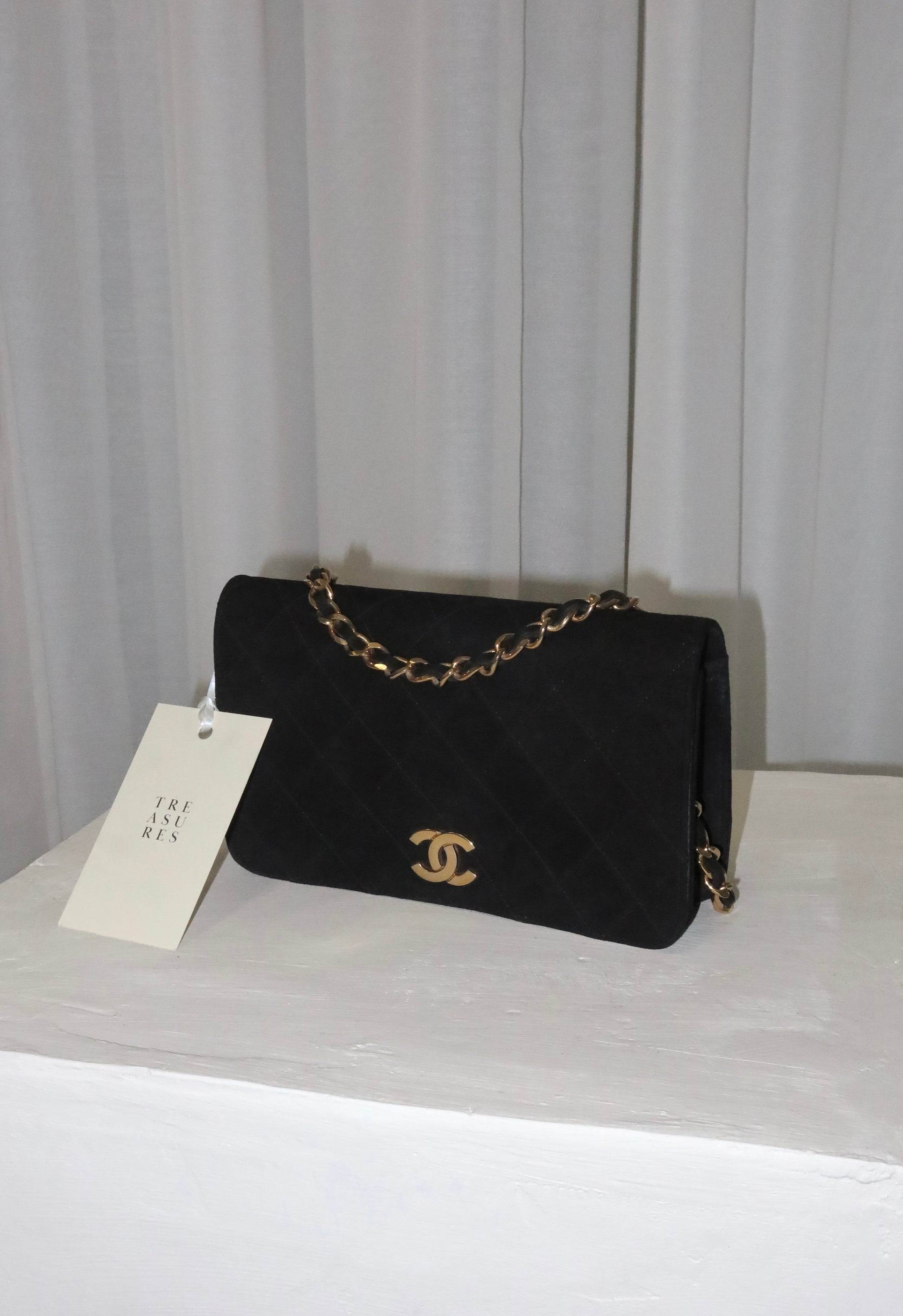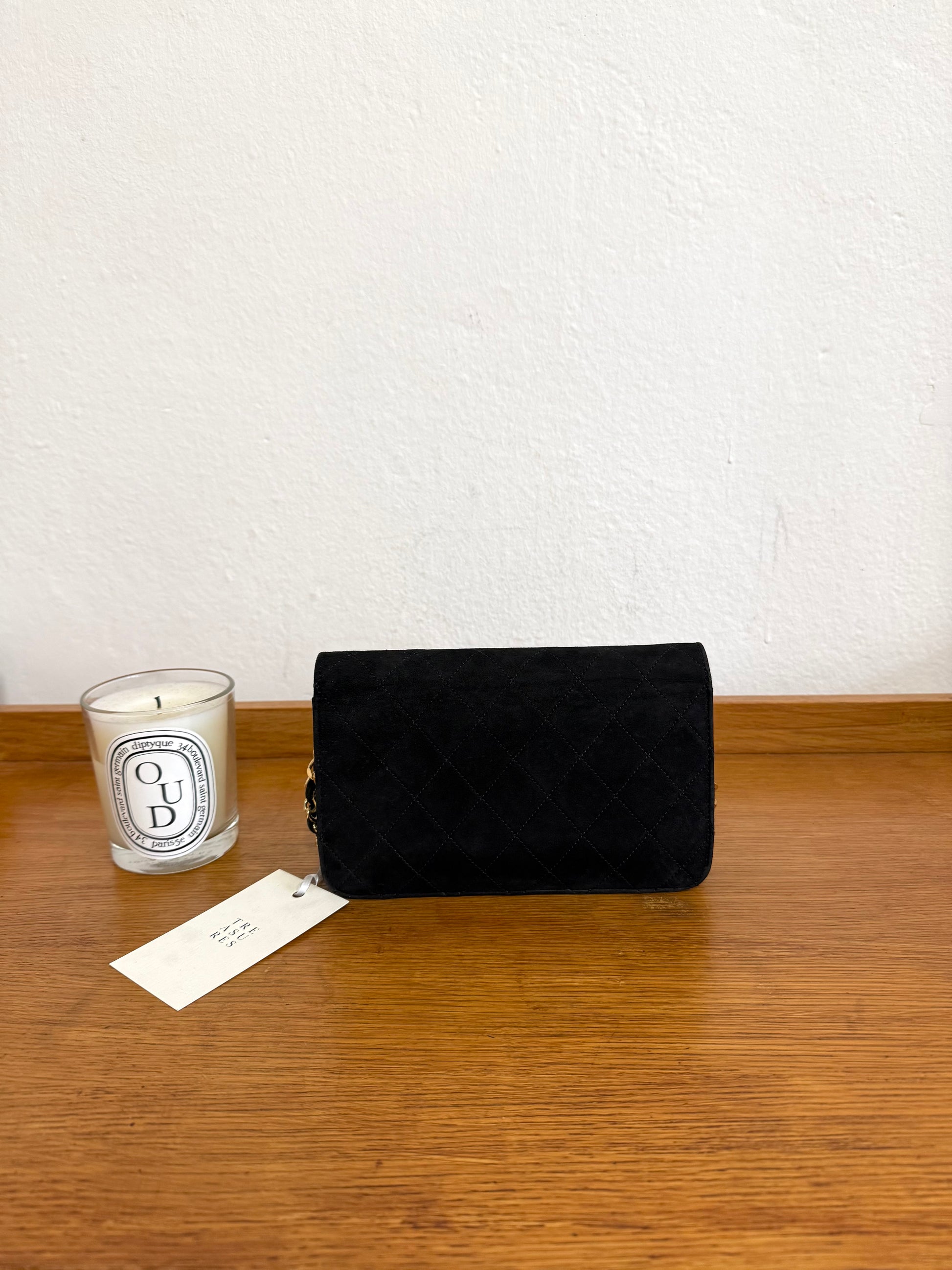 Elegantní Chanel WOC z jemného černého semiše se zlatým hardwarem. Řetízek lze zcela schovat dovnitř a proměnit ji tak v krásné večerní psaníčko. Nadčasový kousek, který působí elegantně a zároveň chic.