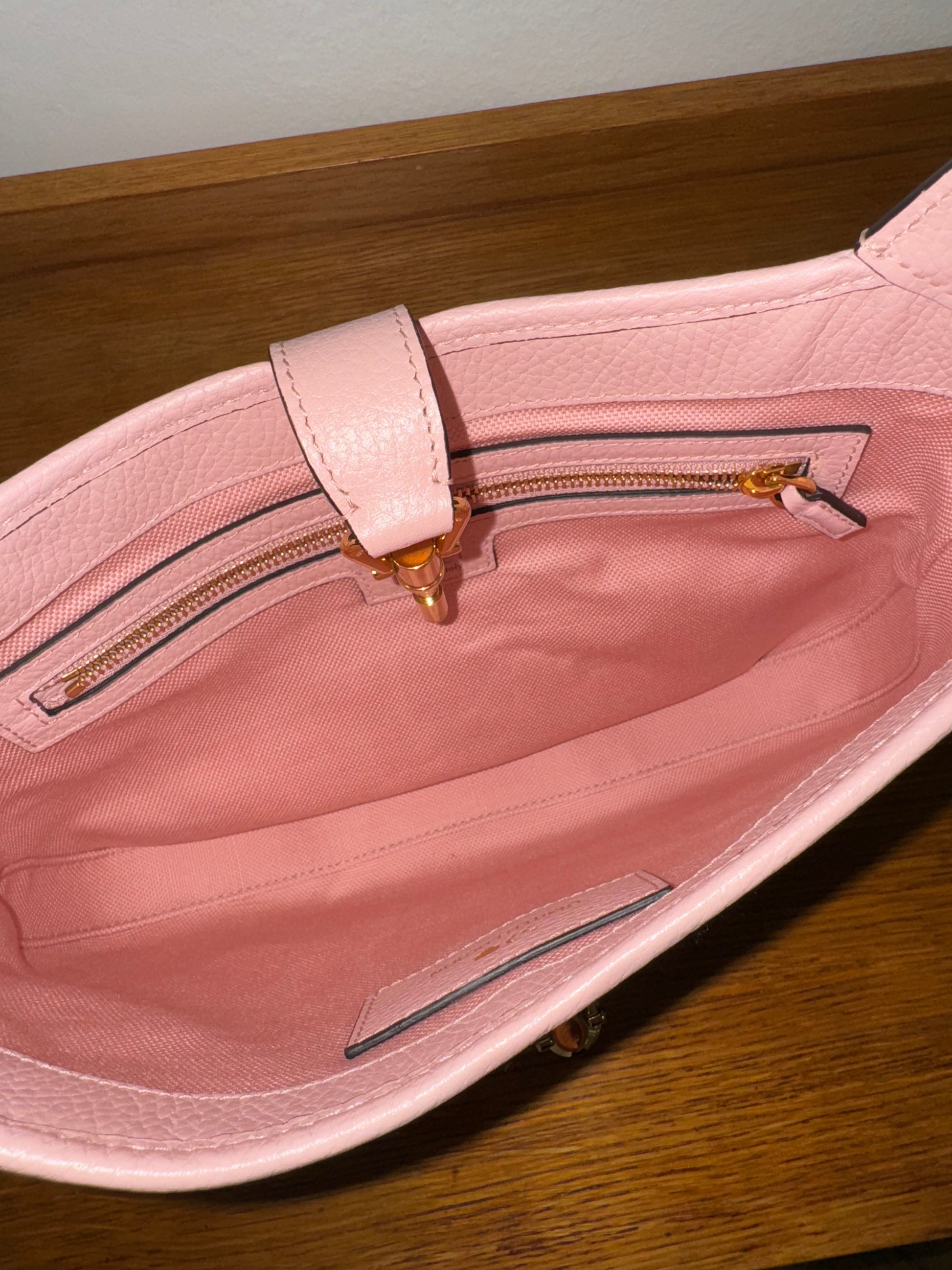 The Gucci Jackie bag, initially launched in the 1950s under the name “Fifties Constance,” was renamed in honor of Jacqueline Kennedy, who was frequently photographed carrying it in the 1960s. This hobo-style shoulder bag, characterized by its signature piston lock, became a symbol of effortless elegance and was revived in several modern iterations by designers like Tom Ford for Gucci and Alessandro Michele. Jackie 1999, 1961, rectangular is one of the most sought after Gucci bags to this day.