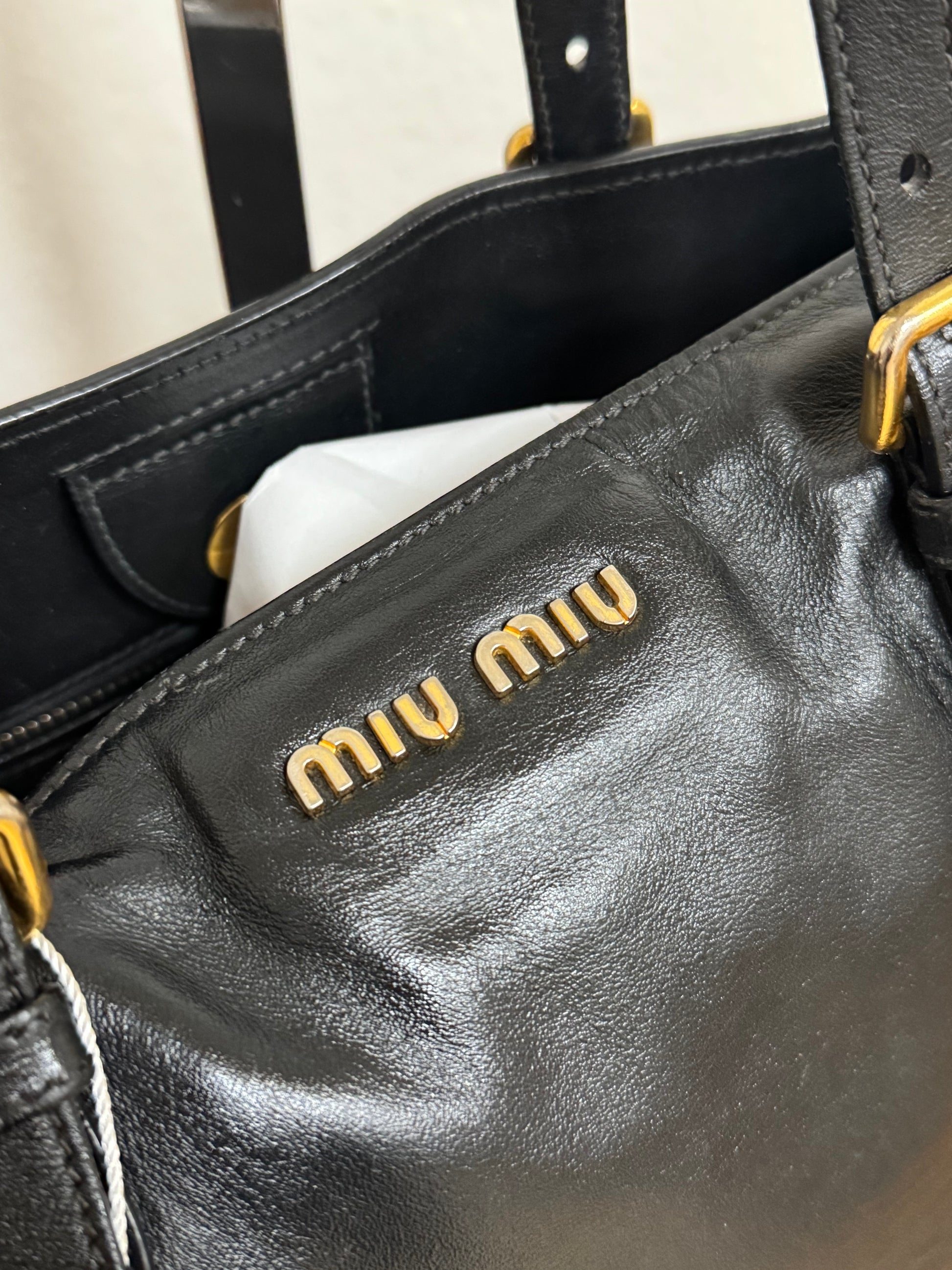 MIU MIU TOTE BAG GOLD HW STUDS
