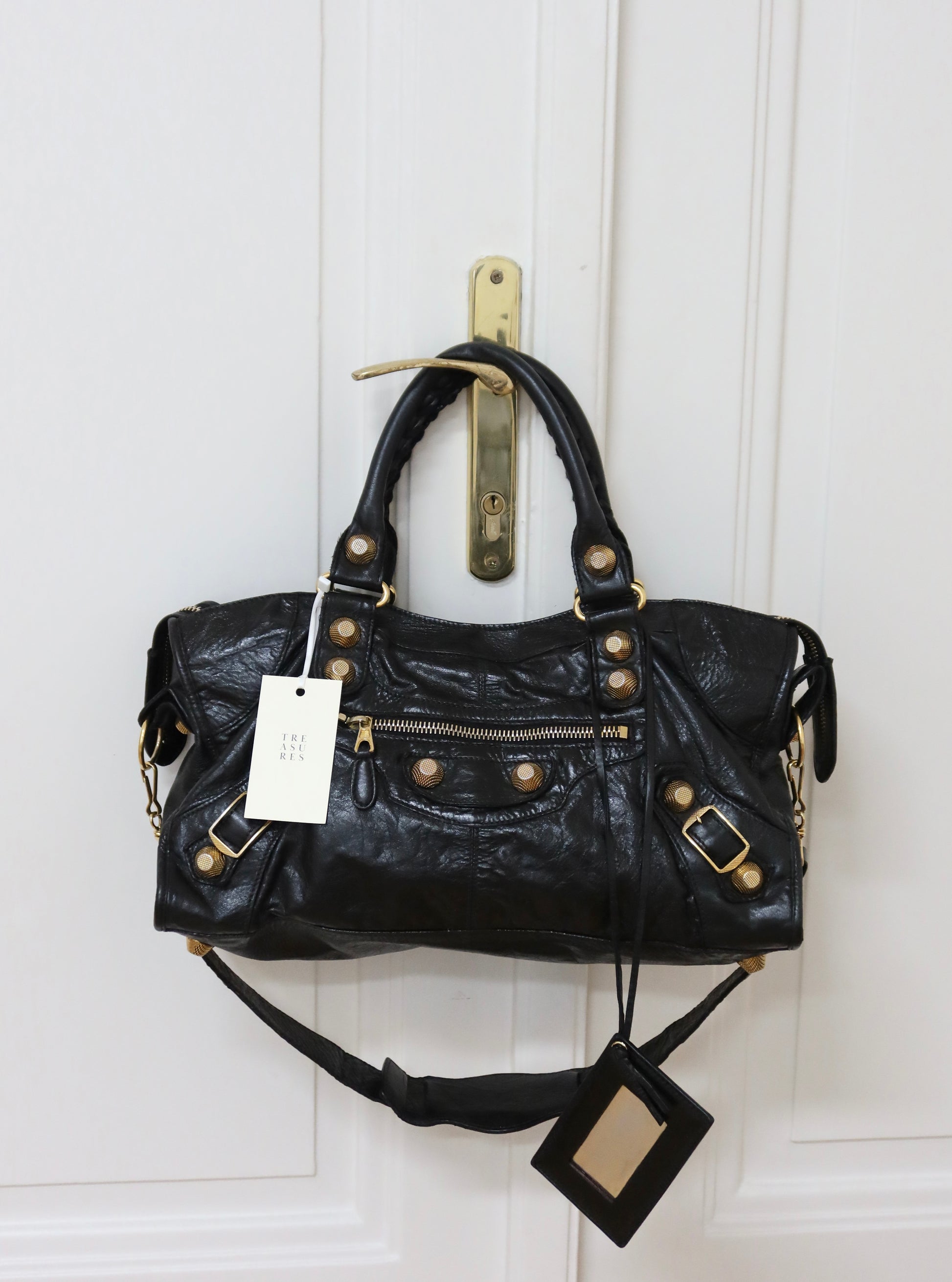 Balenciaga City bag v klasické černé barvě se zlatým hardwarem. Nadčasový model, ideální pro každodenní nošení, pojme všechny vaše nezbytnosti.