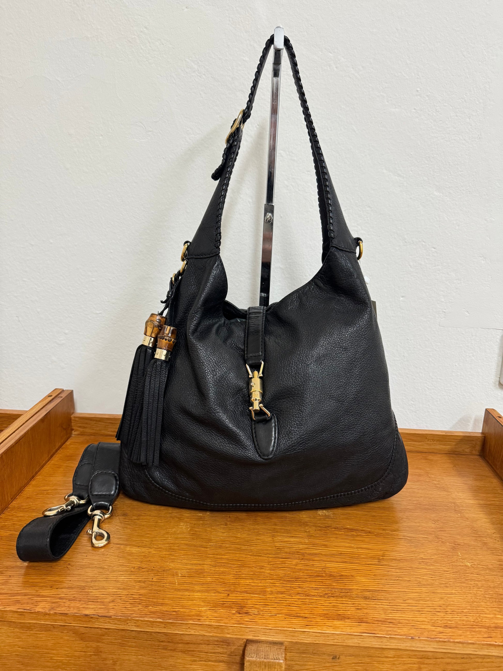 Stylová Gucci Jackie 1961 v celokoženém provedení s třásněmi. Oblíbená nadčasová silueta, ideální na každodenní nošení, pojme všechny každodenní nezbytnosti.