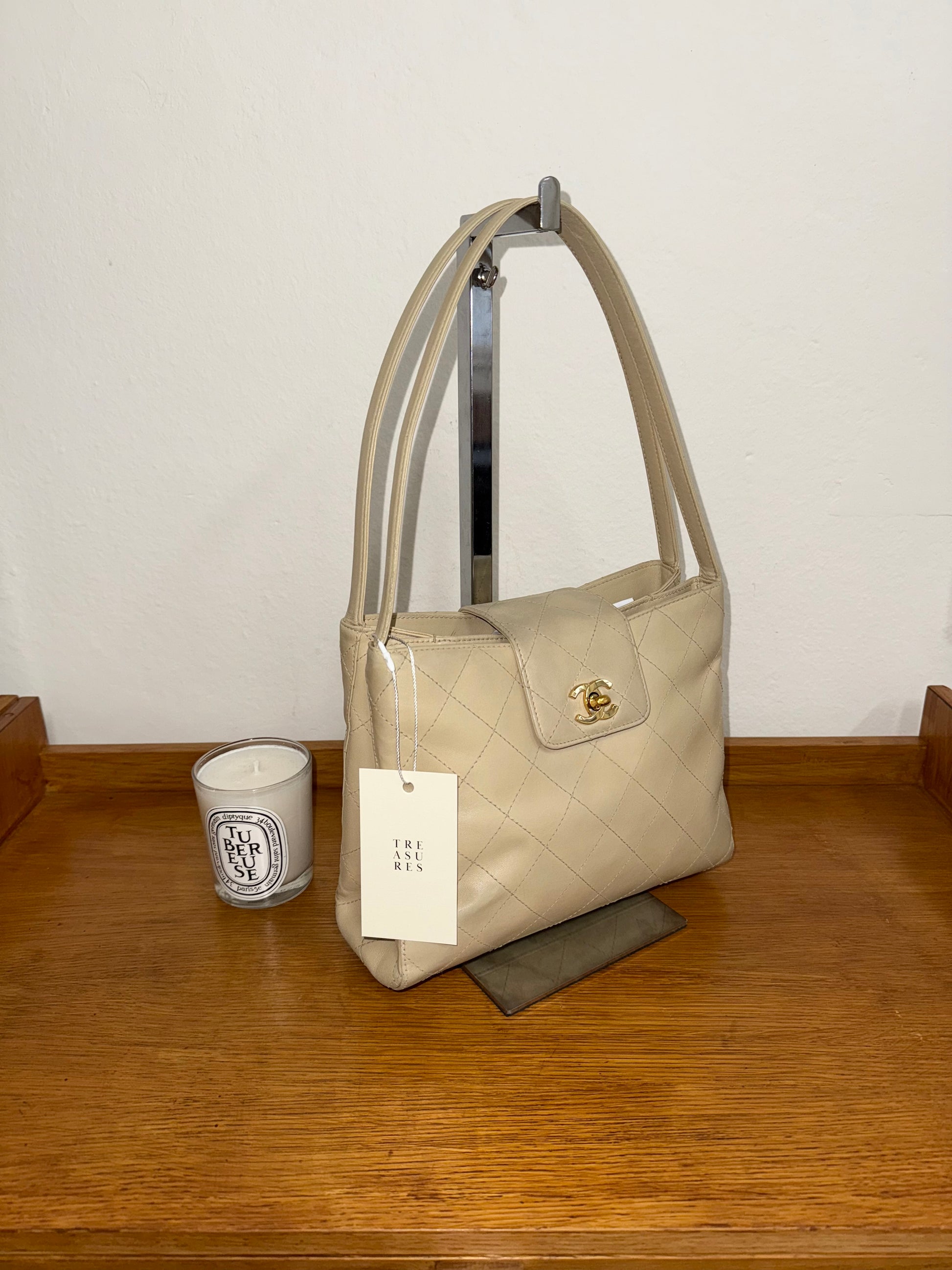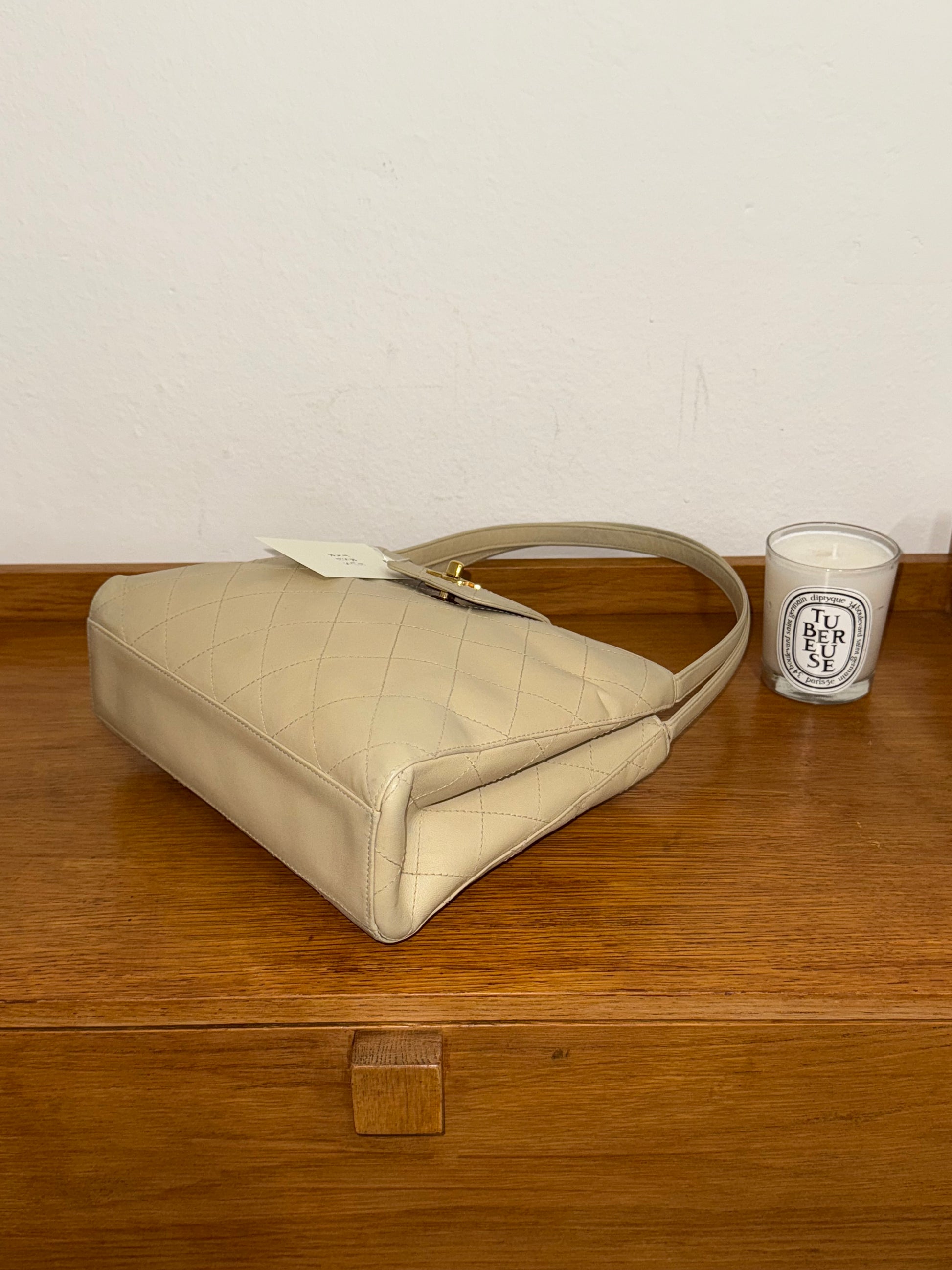 CHANEL BOX CALF SINGLE FLAP CREAM