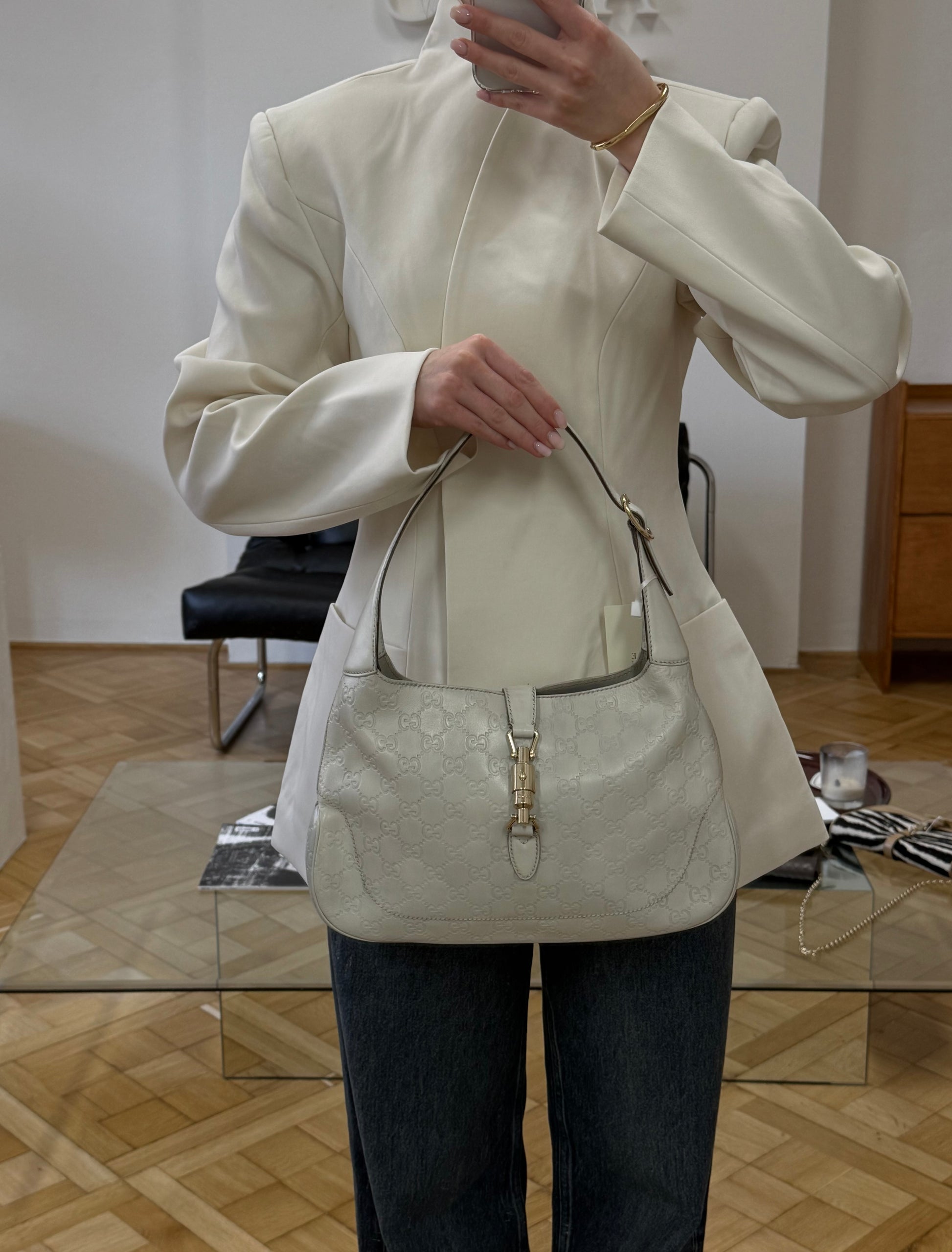 The Gucci Jackie bag, initially launched in the 1950s under the name “Fifties Constance,” was renamed in honor of Jacqueline Kennedy, who was frequently photographed carrying it in the 1960s. This hobo-style shoulder bag, characterized by its signature piston lock, became a symbol of effortless elegance and was revived in several modern iterations by designers like Tom Ford for Gucci and Alessandro Michele. Jackie 1999, 1961, rectangular is one of the most sought after Gucci bags to this day.