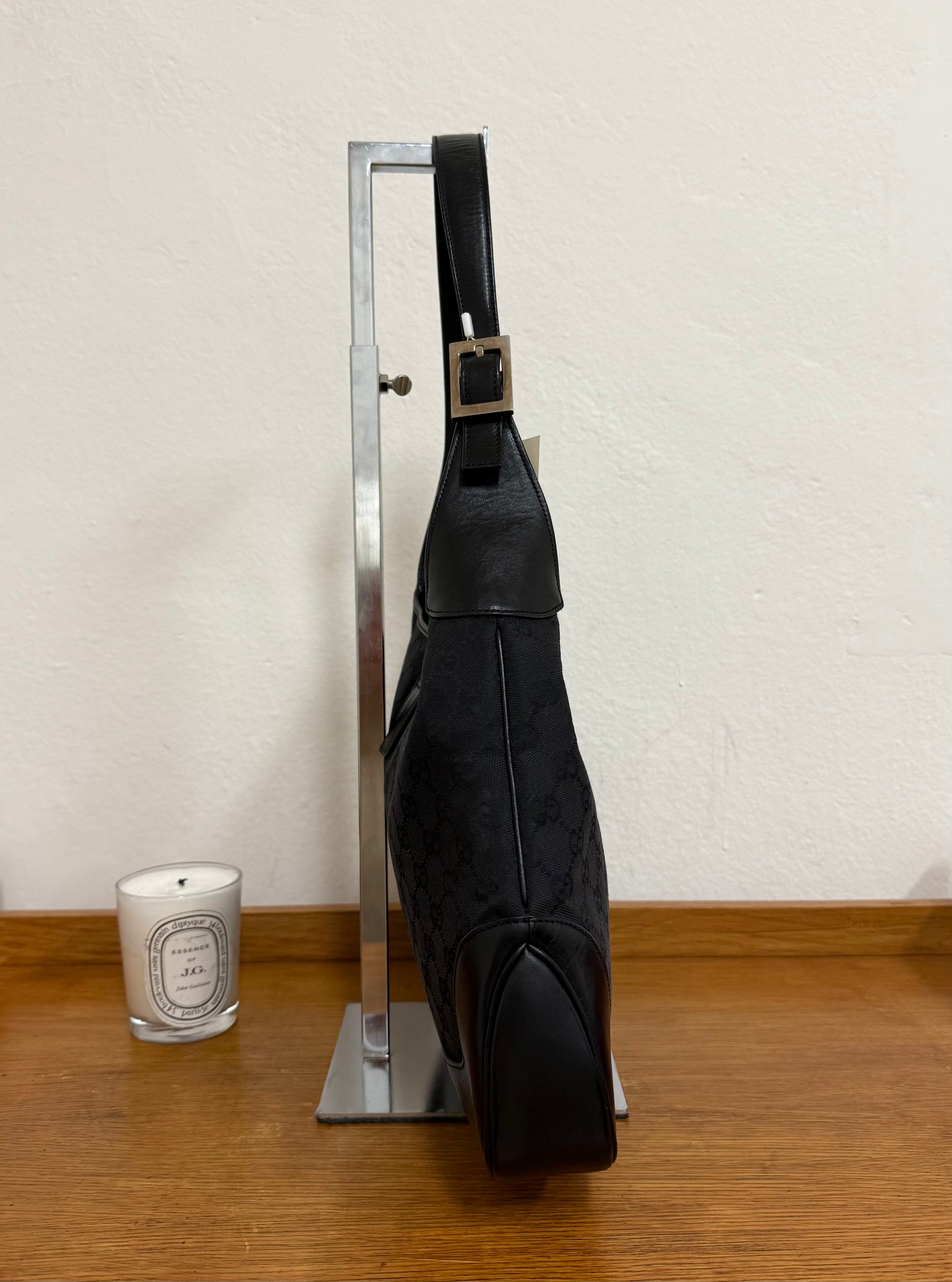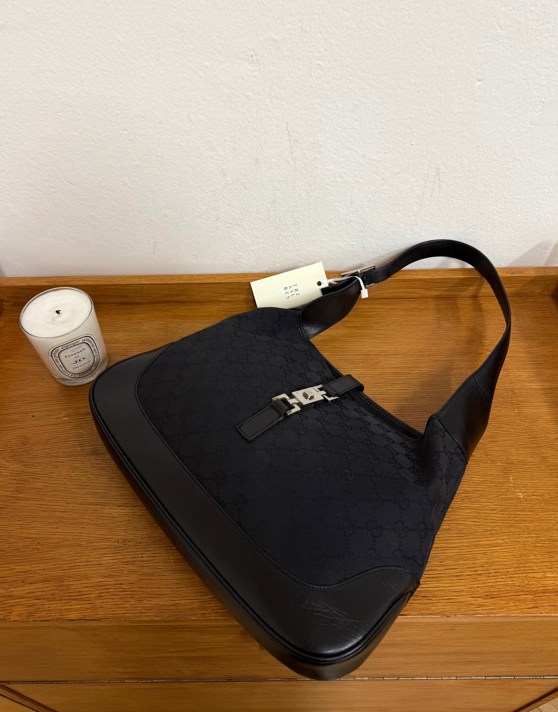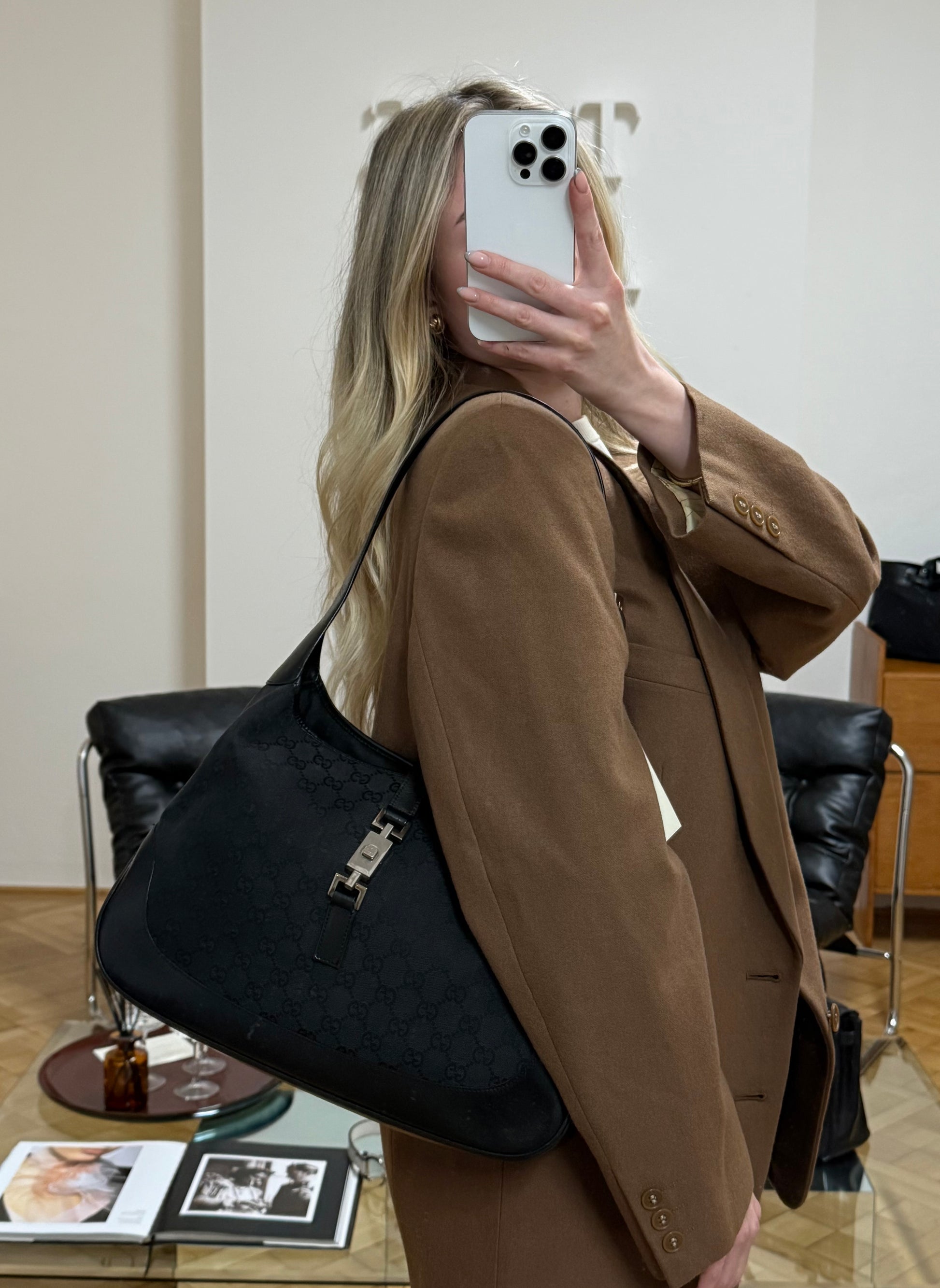 Ikonická Gucci Jackie v klasickém GG monogramu se stříbrným hardwarem. Nadčasová a univerzální silueta.