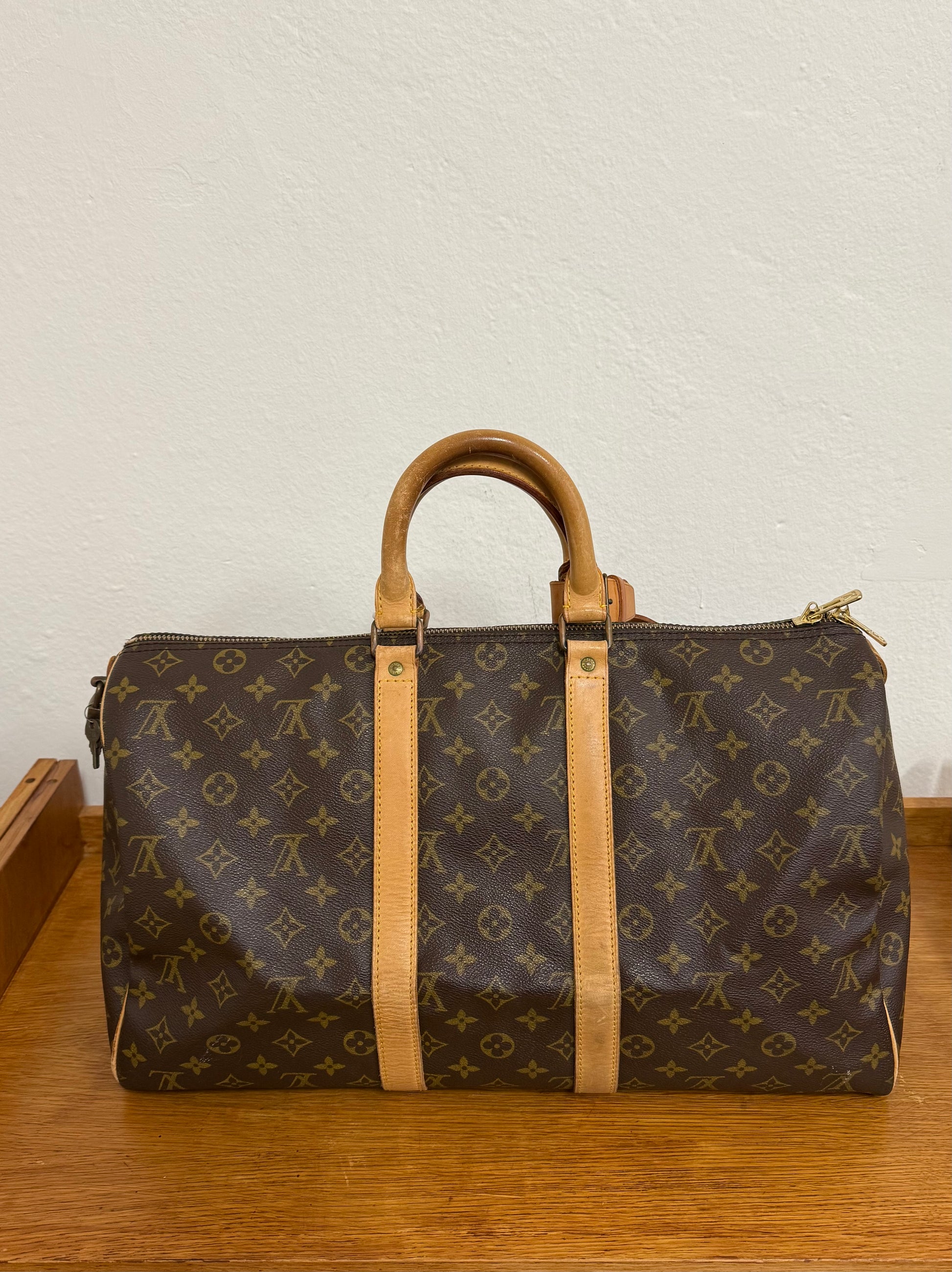 Nadčasová Louis Vuitton Keepall v ikonickém monogram canvasu. Klasická cestovní silueta, která je lehká a odolná.