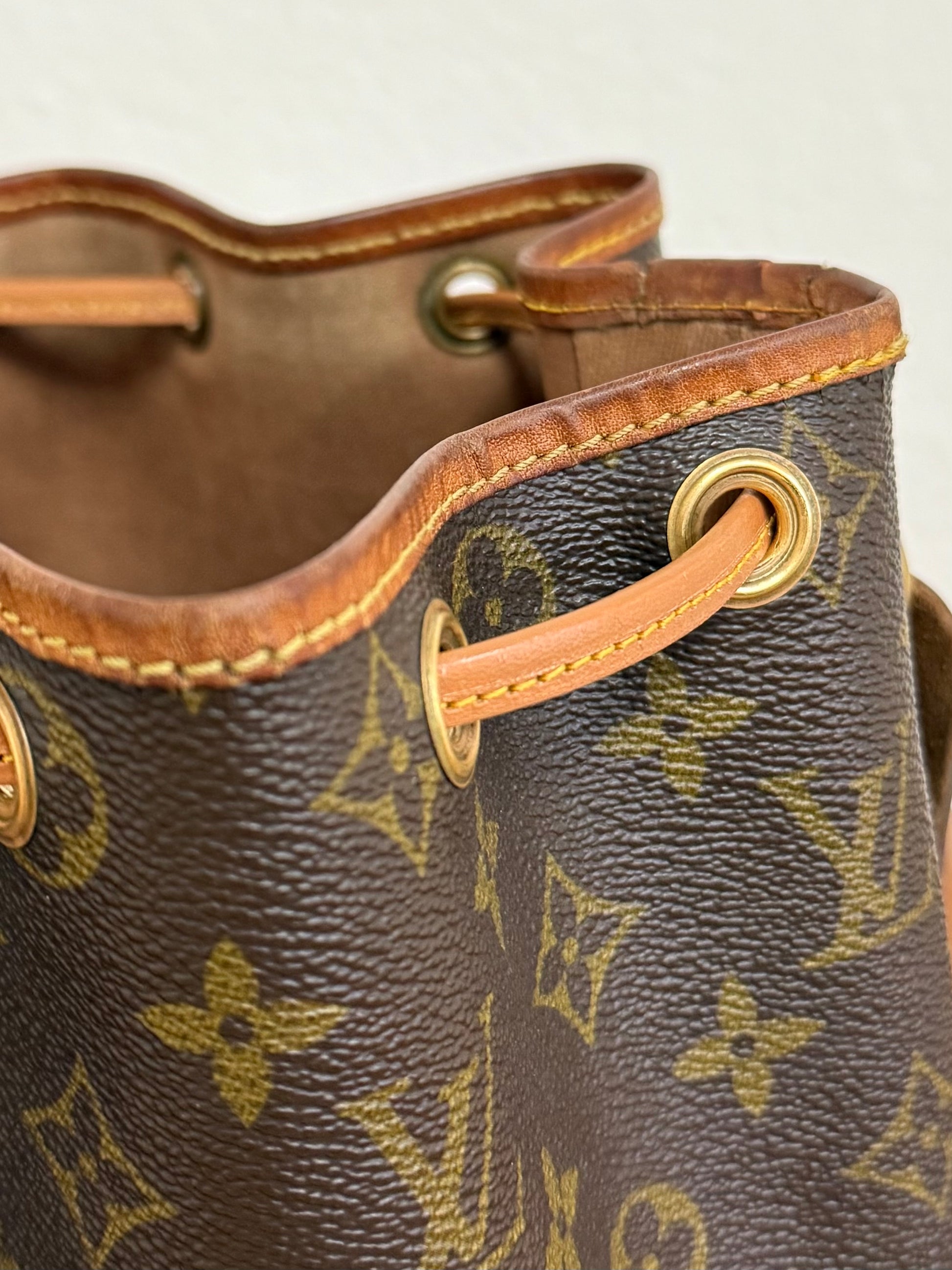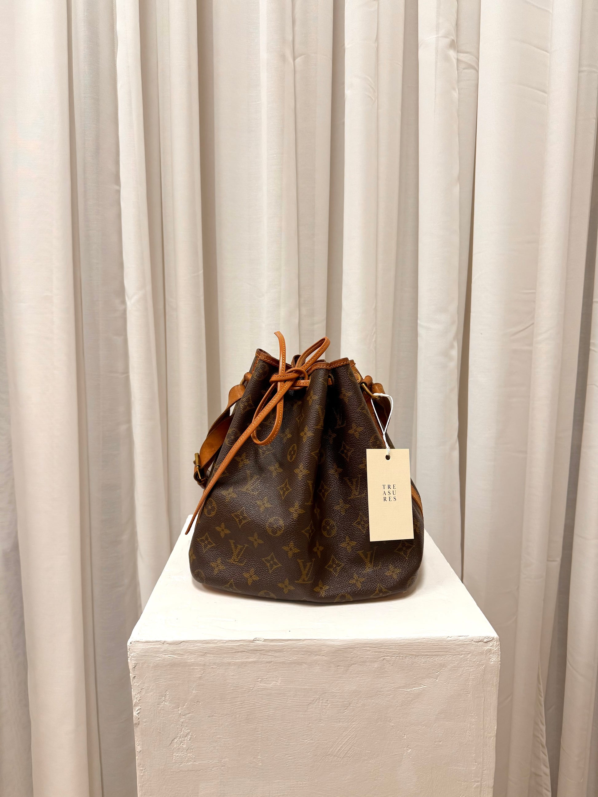 Klasická Louis Vuitton Petite Noé z odolného monogram canvasu s koženými prvky. Nadčasový bucket bag, který se skvěle hodí pro každodenní nošení, prostorný a přitom elegantní.