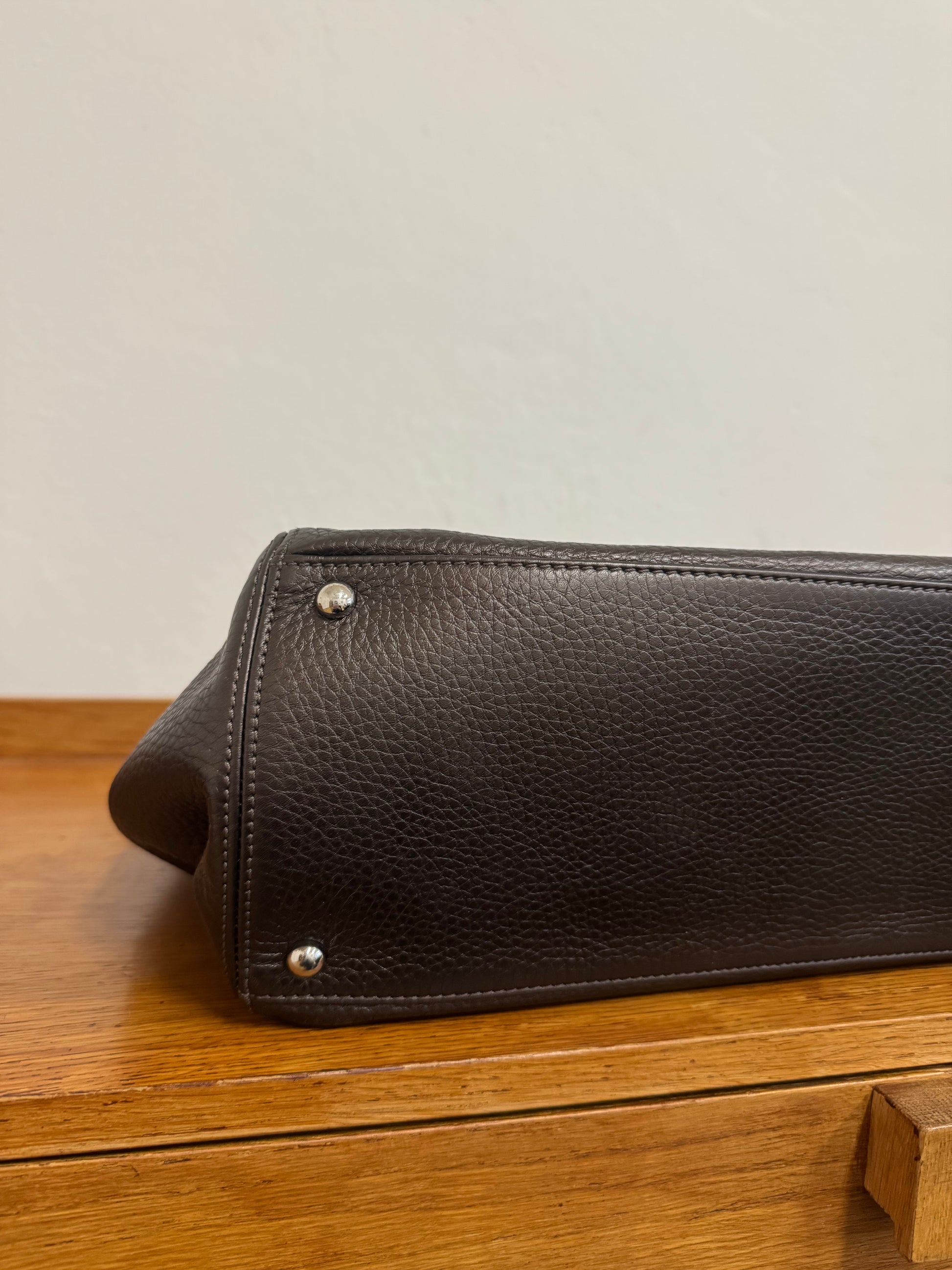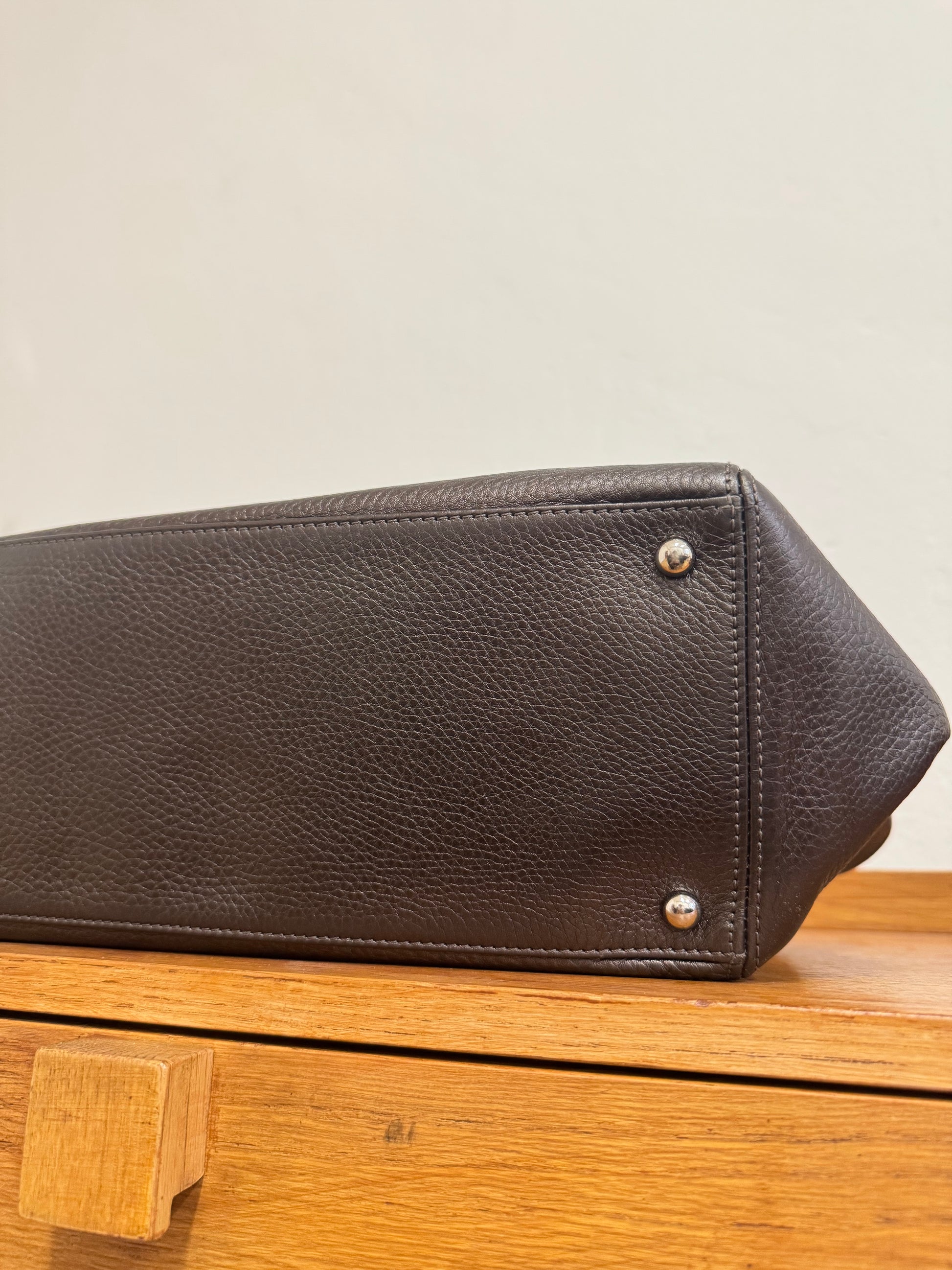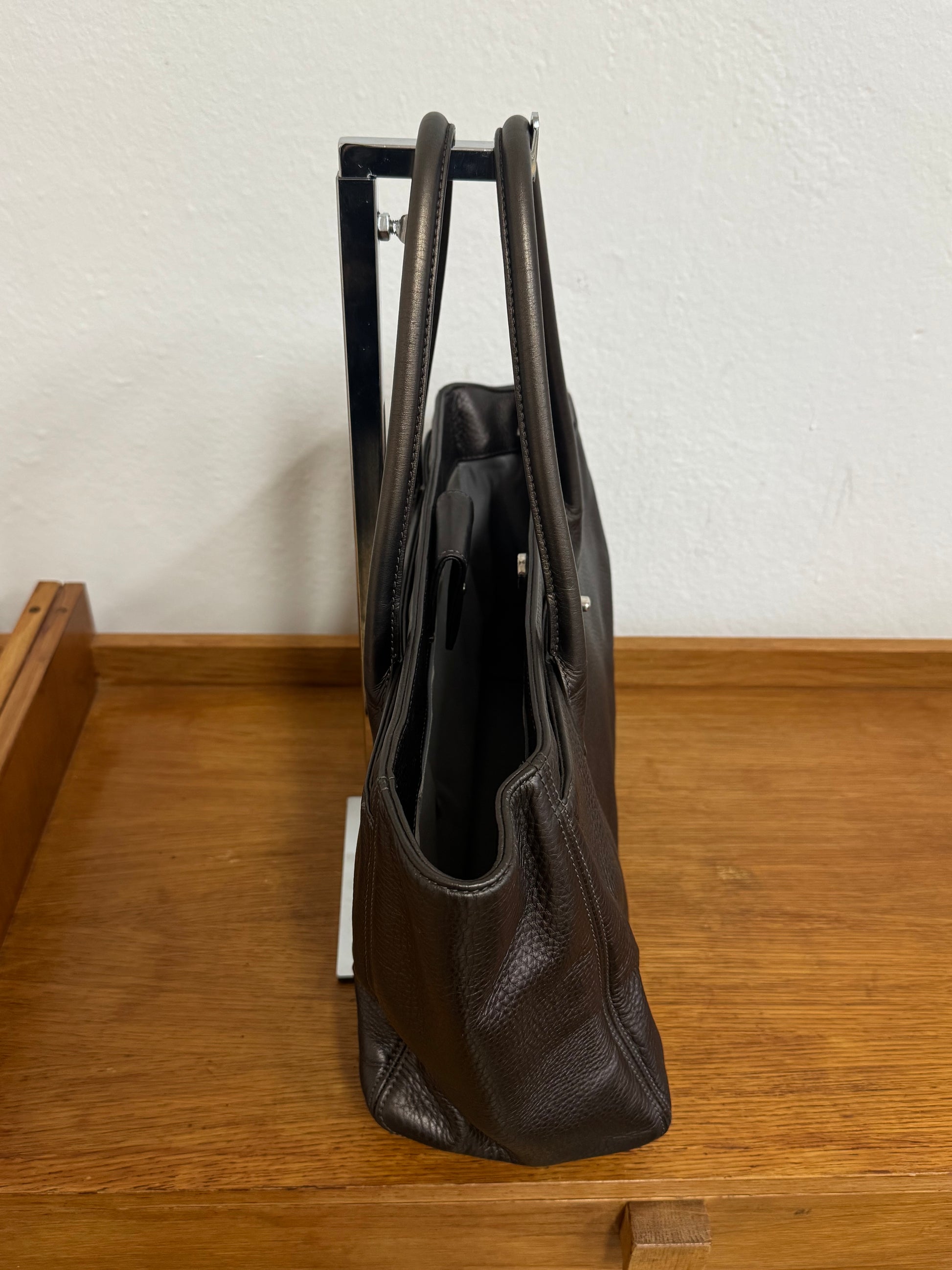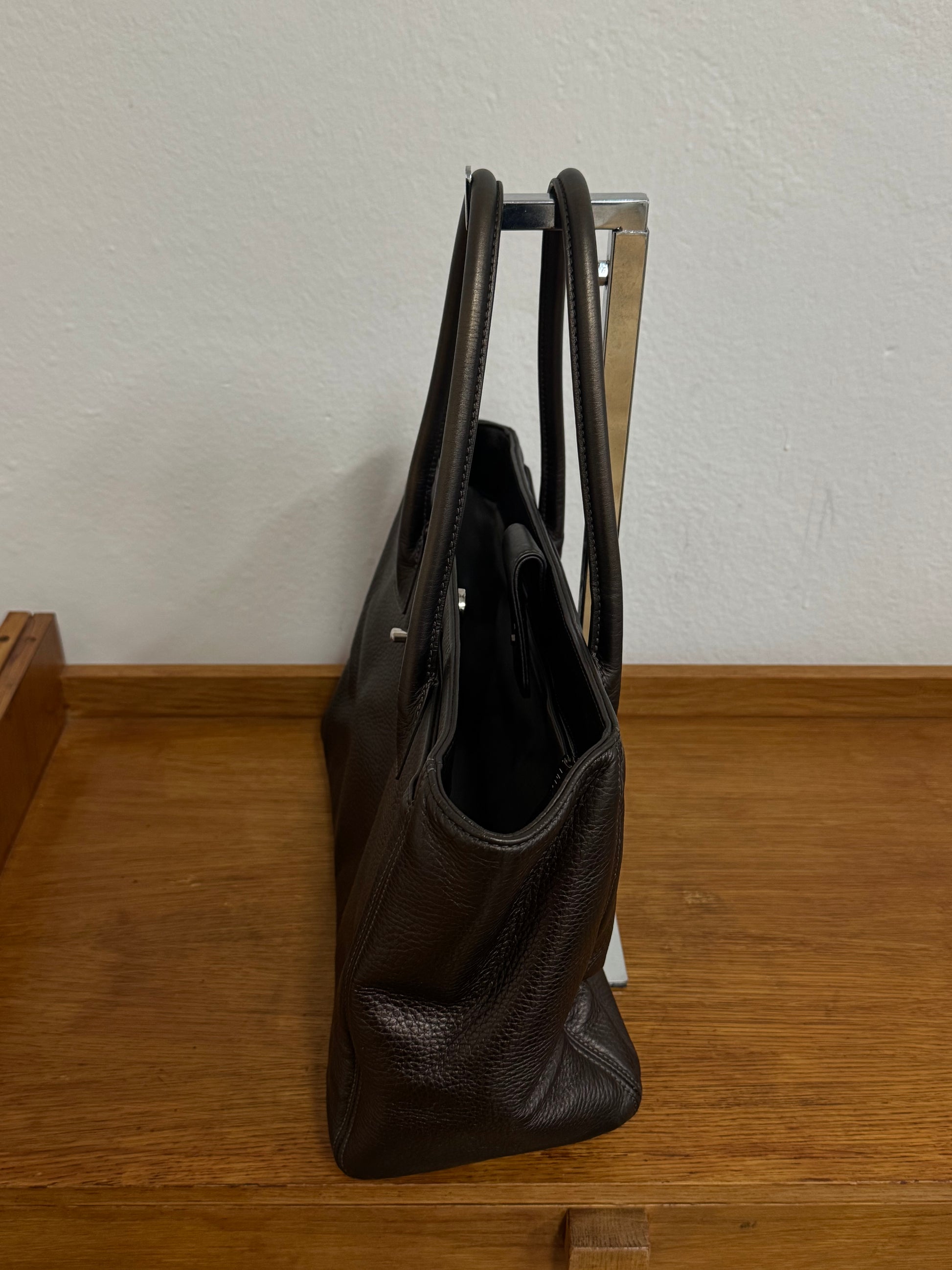 Již nesehnatelná ikonická business kabelka Chanel Executive Tote z grained hnědé kůže s lehkými odlesky se stříbrným hardwarem. Jak už název napovídá, model Executive byl vytvořen jako sofistikovaná business kabelka – dokonale strukturovaná, s praktickým tvarem a přehledným vnitřním uspořádáním.
